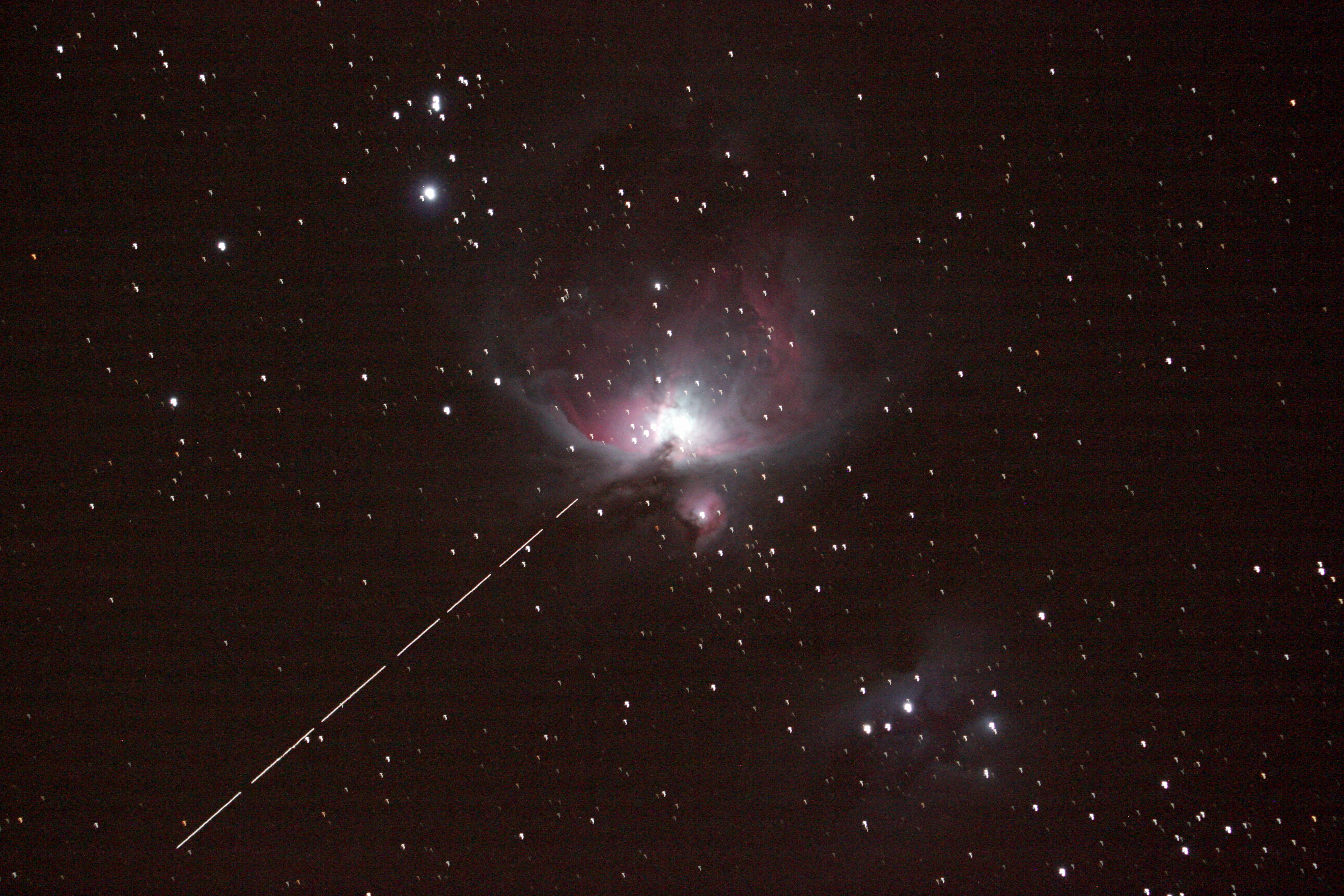 Beim Scharfstellen meiner Camera Eos600d am Oriontrapez kam plötzlich ein Punkt rausgeflogen. Im Liveview bewegte er sich ganz langsam. In Sterne und Weltraum 11/2015 fand ich einen Artikel. Es müsste der Asteroid (747) Winchester sein.