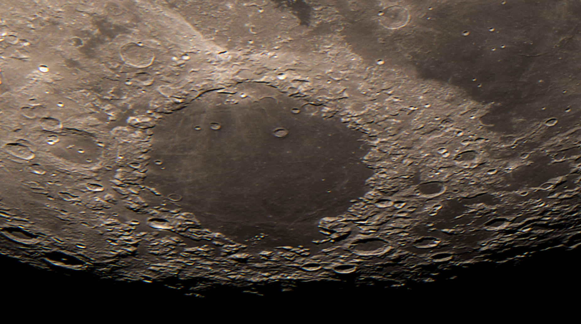 Am vergangenen Mittwoch sah ich vor dem Zubettgehen, dass der Himmel klar war und der Mond recht hoch stand. Schnell das Veluxfenster in dem kleinen Speicher nebenan geöffnet, den Refraktor hochgerichtet, und endlich konnte ich die neue Kamera, eine ZwoAsi 178 MC benutzen und testen. So ein Speicherobservatorium mit Veluxfenster welches sich quasi vertikal öffnet – Dachdeckeraustiegsluke genannt – ist herrlich. Alles betriebsbereit vor Ort, nur 3x click und schon läuft die Montierung … und alles bei Hand. Wäre da nicht der Temperaturunterschied, der am Mittwoch 10° betrug. Aber damit versuche ich zu leben, und wenn ich eine Bildreihe plane, und eine Stunde zuvor das Fenster weit öffne, ist es kein Problem mehr … zumindest bei dem Refraktor. Für die hastigen Unstände, die kleine Öffnung und eine neue Kamera gefällt mir das Bild zimmlich gut. Na klar … es geht auch besser, aber dann mit mehr Aufwand und mehr Öffnung.