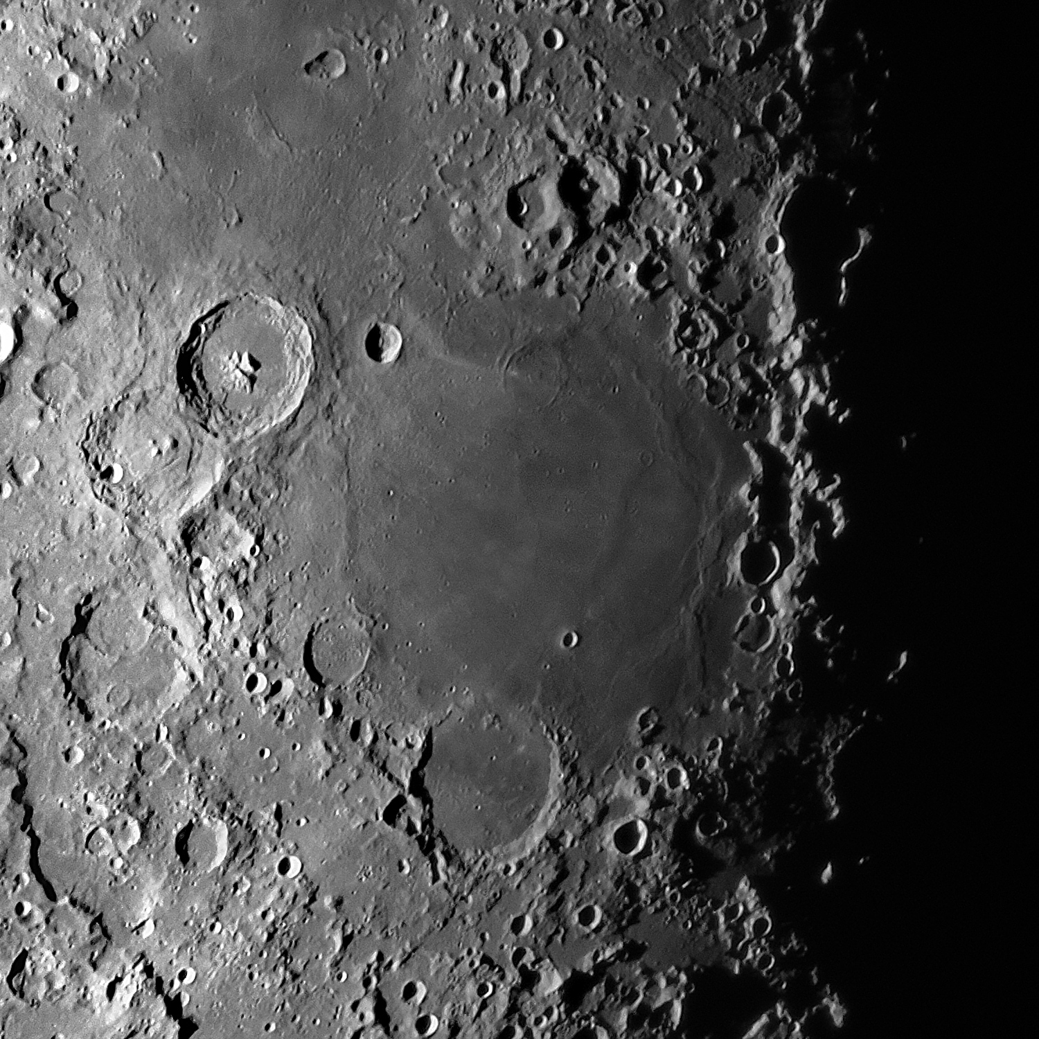 Im Inneren vom Mare Nectaris sind viele Kleinkrater zu erkennen. Am Mare-Rand befinden sich schöne bekannte Krater wie Fracastorius und das Dreigespann Theophilus, Cyrillus und Catharina.