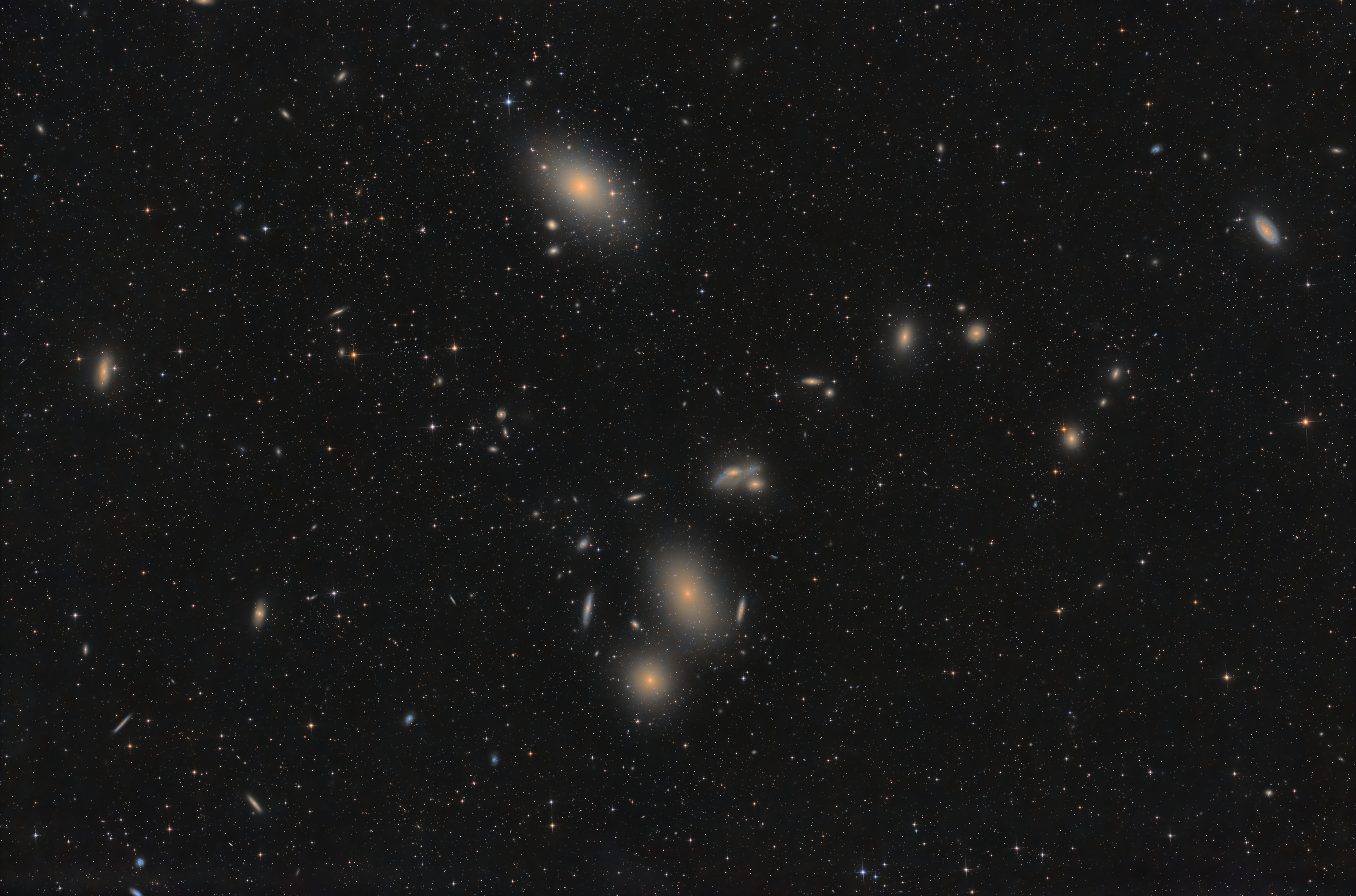 Diese wunderschöne Galaxienkette im Virgo-Galaxienhaufen ist benannt nach dem Astrophysiker Benjamin Markarjan, der in den 1970er Jahren diese Himmelsregion intensiv erforschte. Diesesmal gelang es mir, die riesige Elliptische Galaxie M87 ebenfalls noch in den Bildausschnitt unterzubringen.