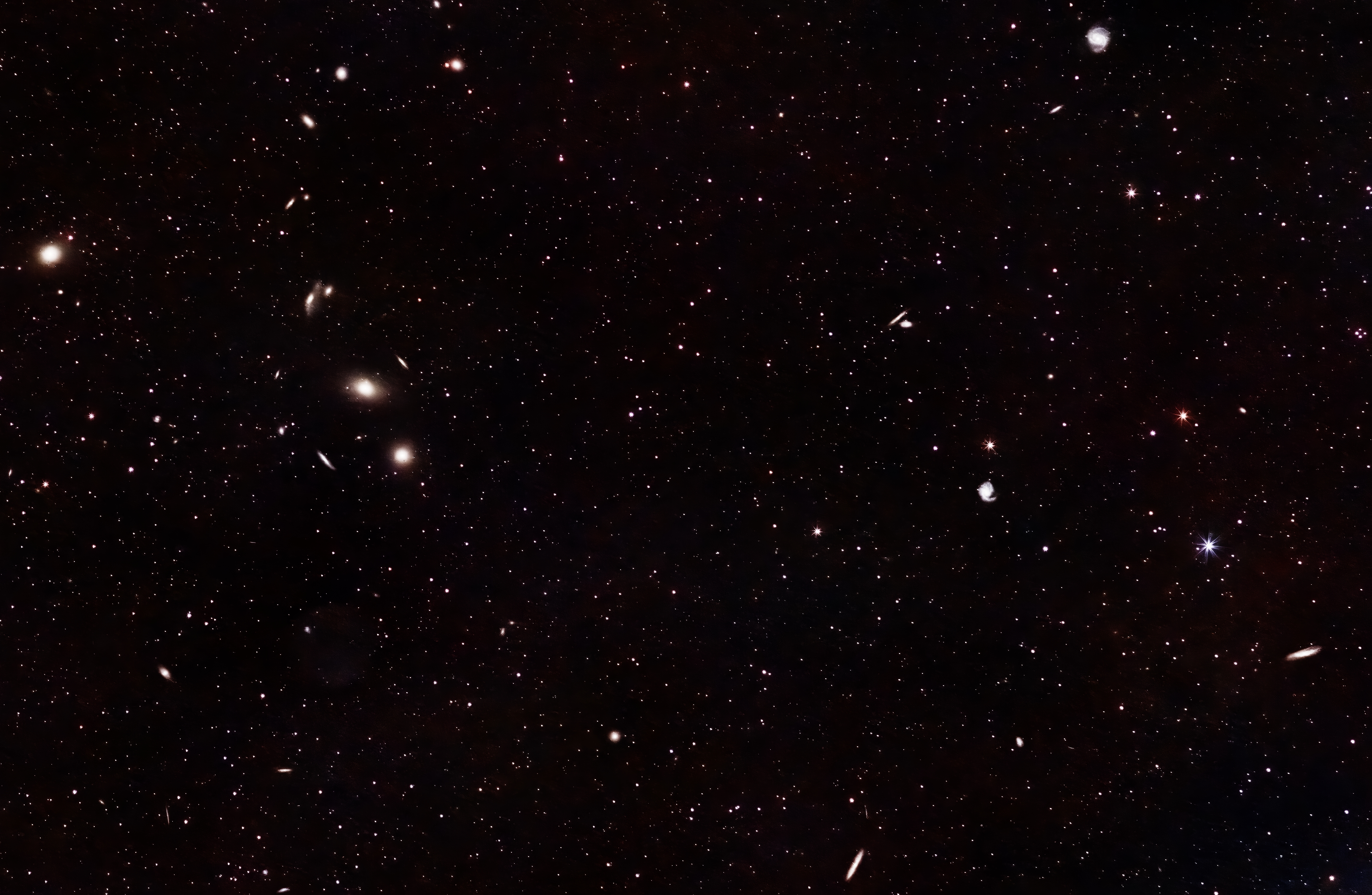 Auch für Nur-Fotografen (Kamera + Objektiv) ein dankbares Objekt, die Gegend zwischen Messier 87 und Messier 100. Auf dieser Aufnahme sind mehr als hundert Galaxien zu sehen, im Plate Solving wird man förmlich erschlagen.