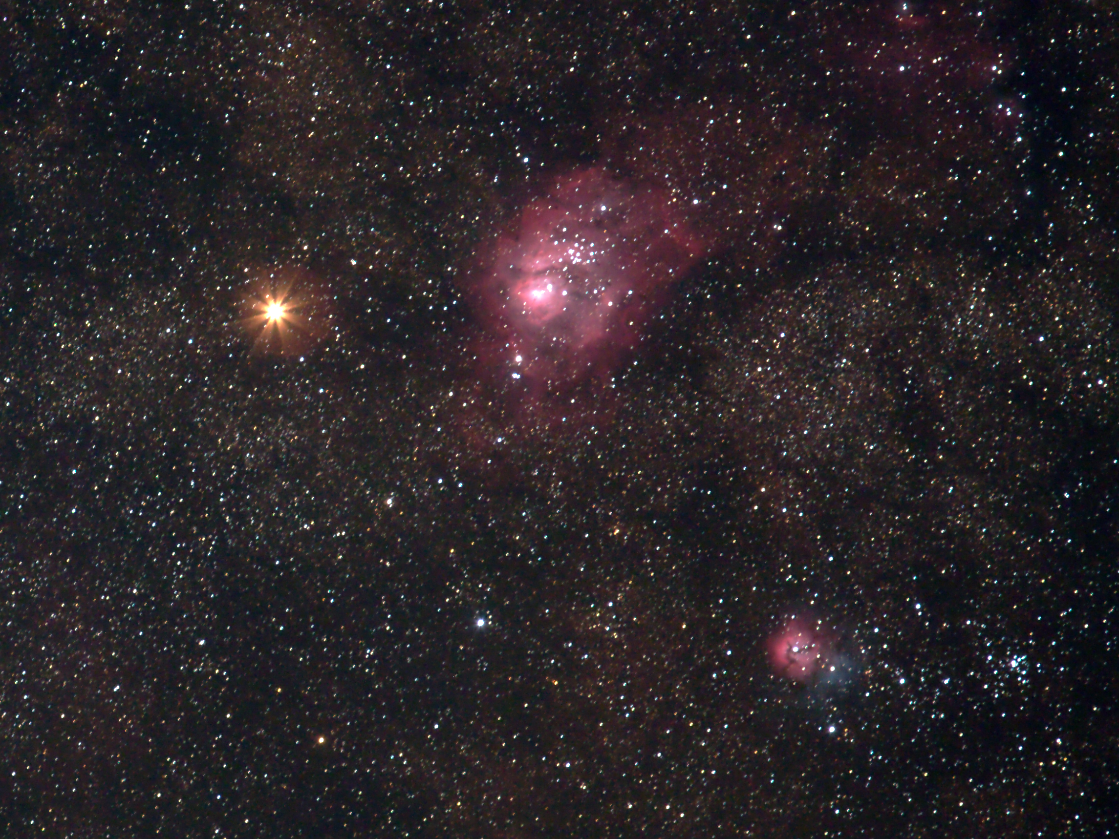 Nach dem Besuch von Komet C/2013 A1 Siding Spring begegnete der Rote Planet vom 26 bis 28. Oktober 2014 dem Lagunennebel Messier 8. Natürlich handelte es sich dabei nicht um eine "echte" Begegnung, dafür war sie leichter zu fotografieren - besonders von der Südhalbkugel, wo beide Objekte abends recht hoch am Himmel standen.