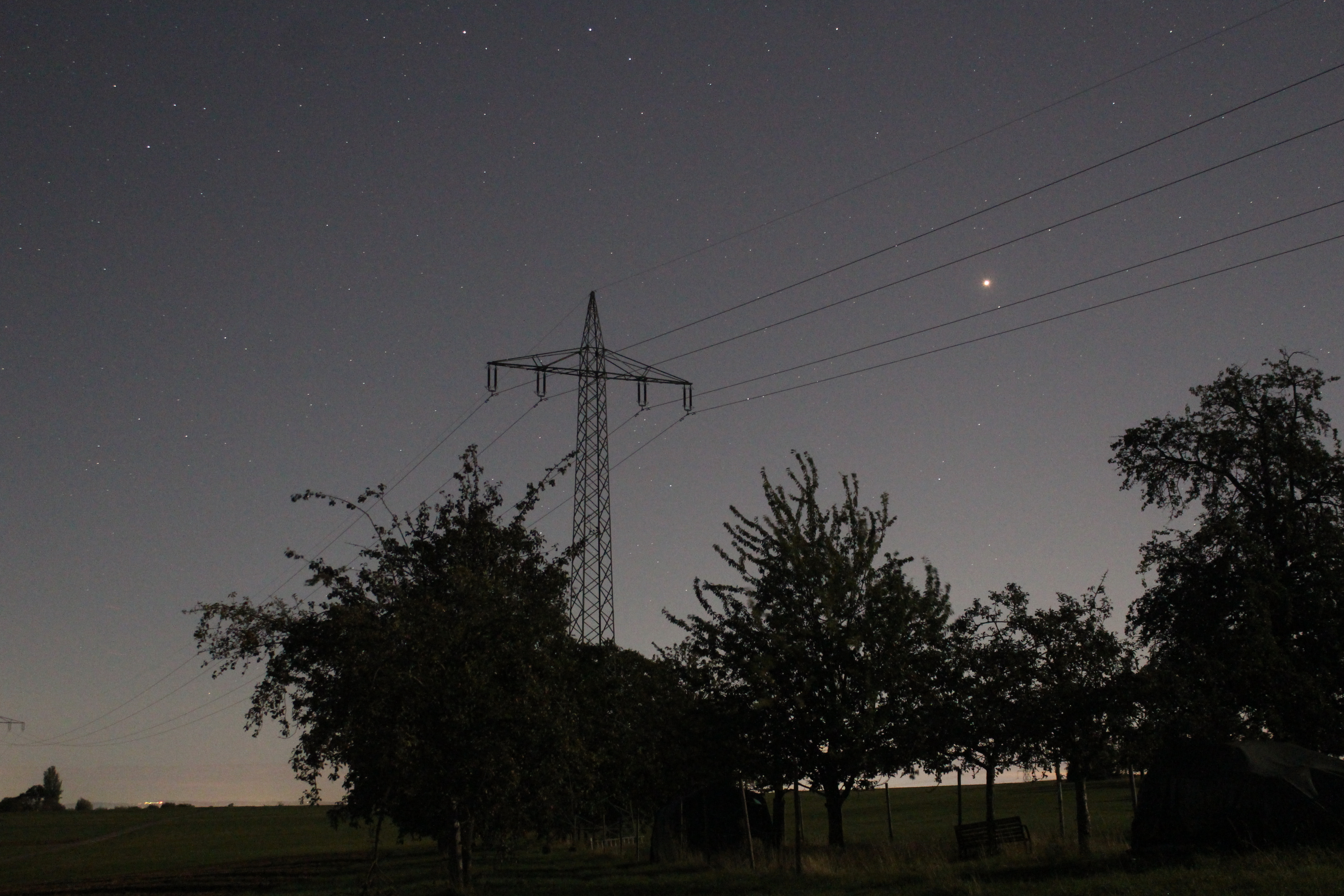 aufgenommen nordwestlich des Leonberger Ortsteils Höfingen mit einem Mast der Bahnstromleitung Stuttgart-Zazenhausen - Eutingen im Vordergrund.