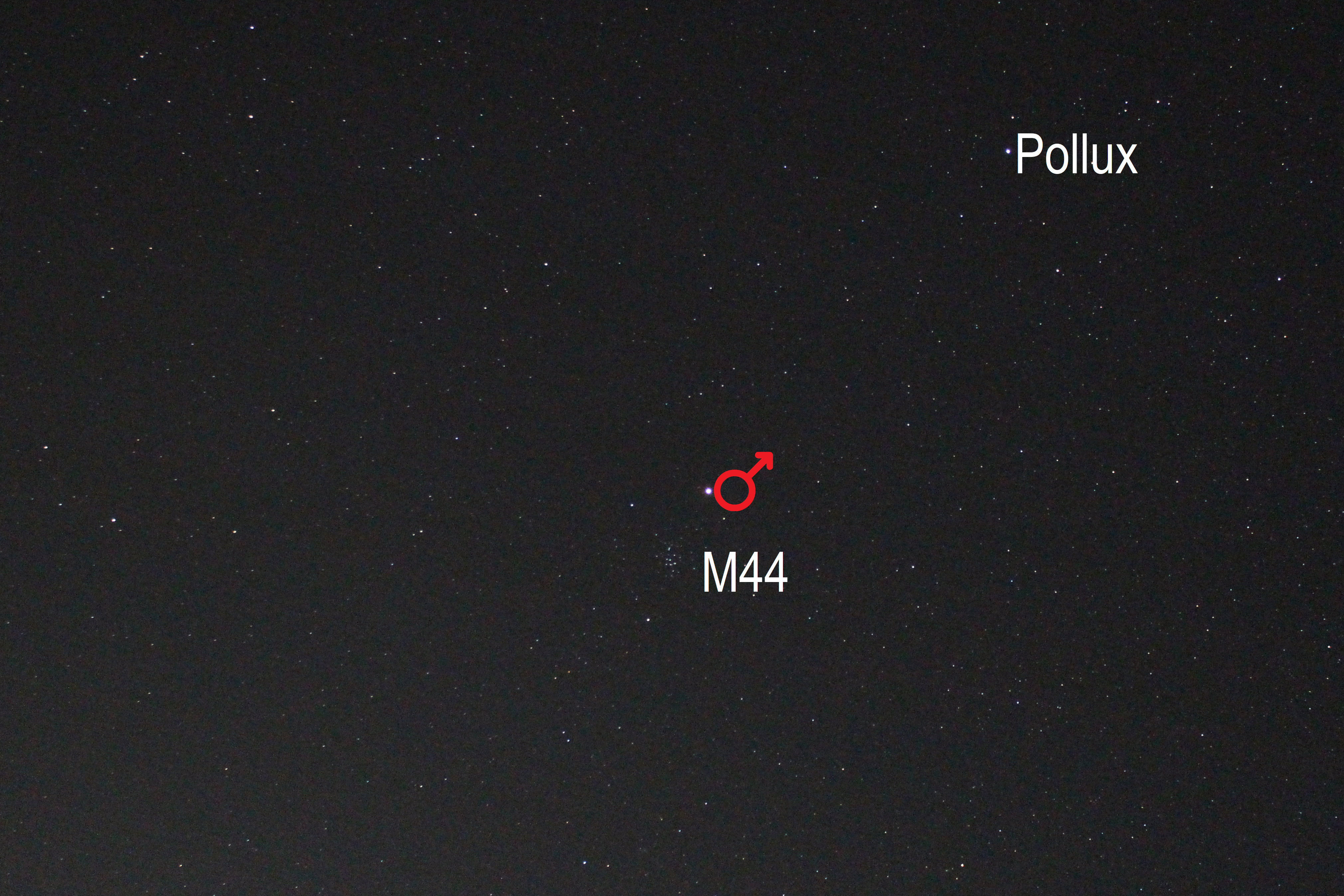 Mars im Sternbild Krebs, nordwestlich des Sternhaufens M44