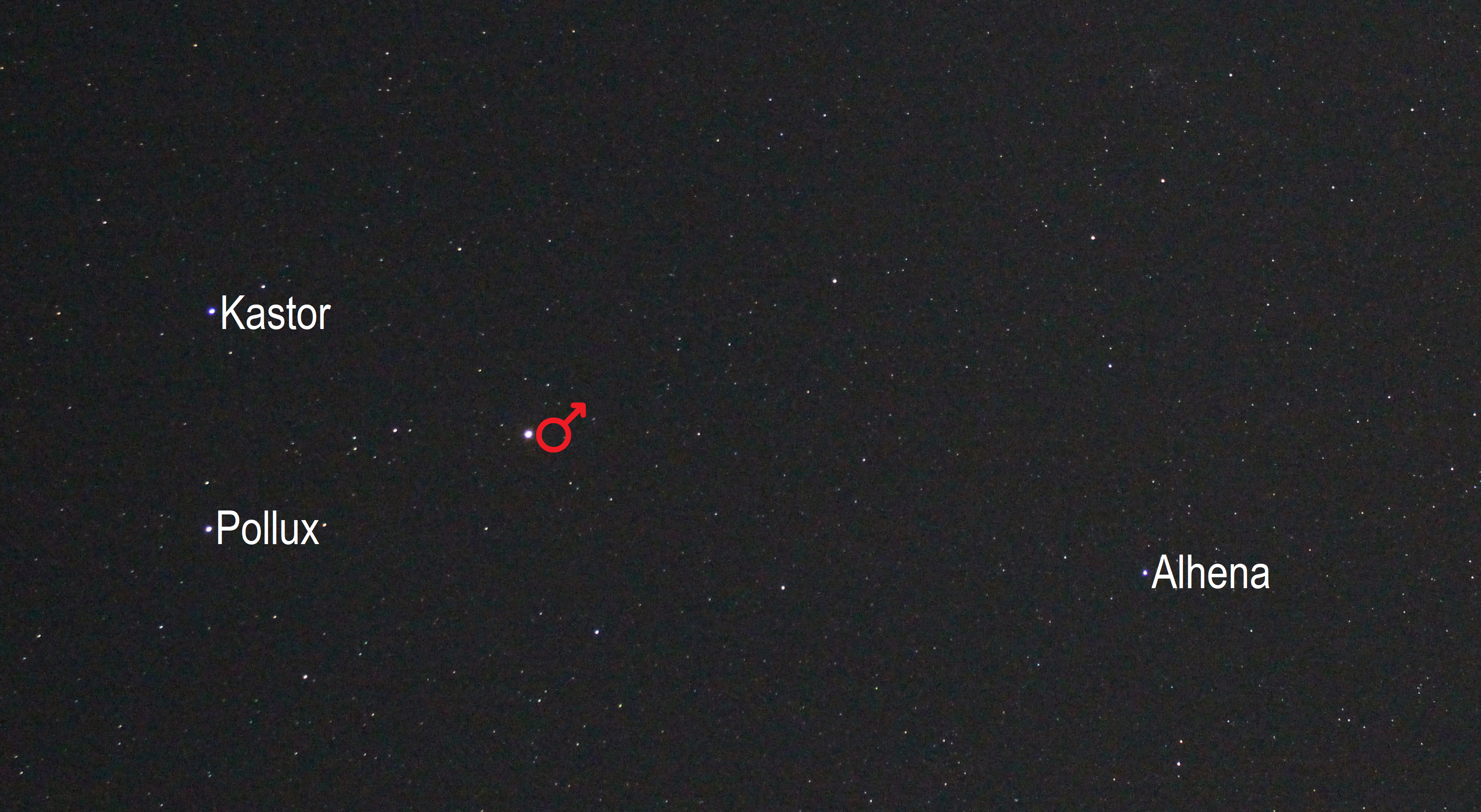 Leserbilder Astronomie: Mars im Sternbild Zwillinge (Objekte beschriftet)