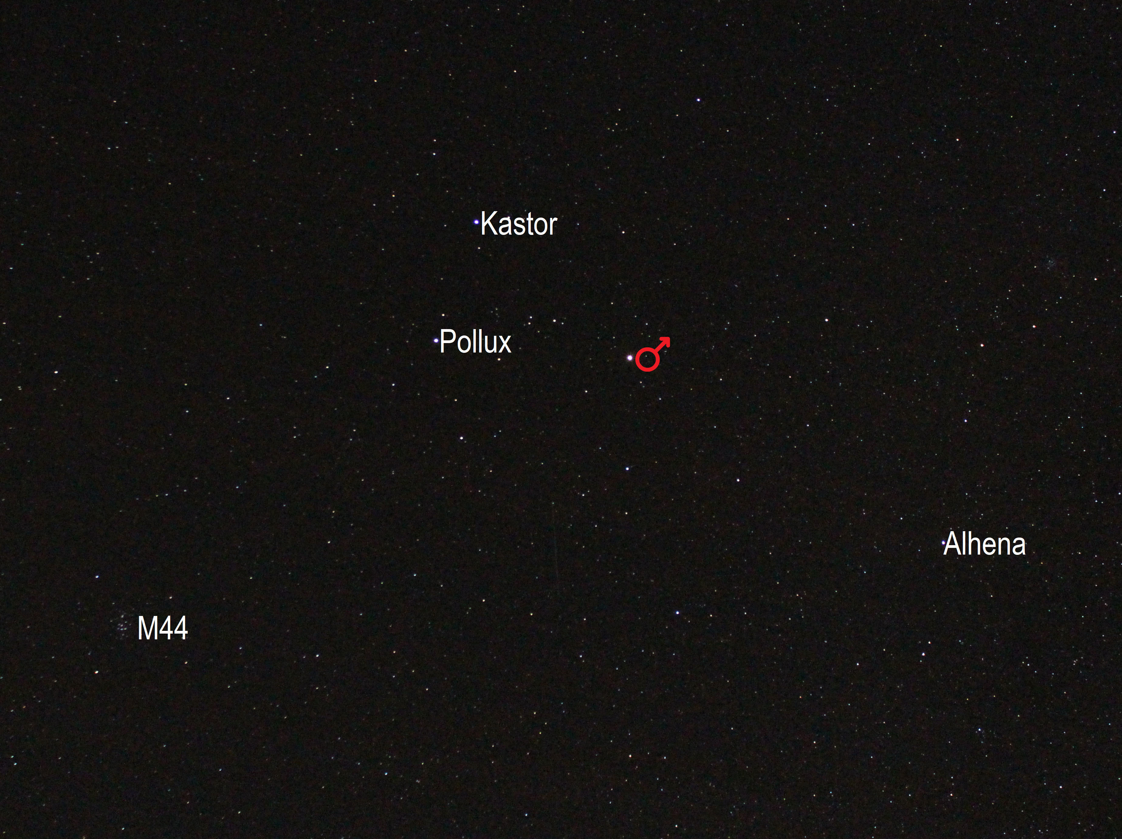 Leserbilder Astronomie: Mars im Sternbild Zwillinge (Objekte beschriftet)