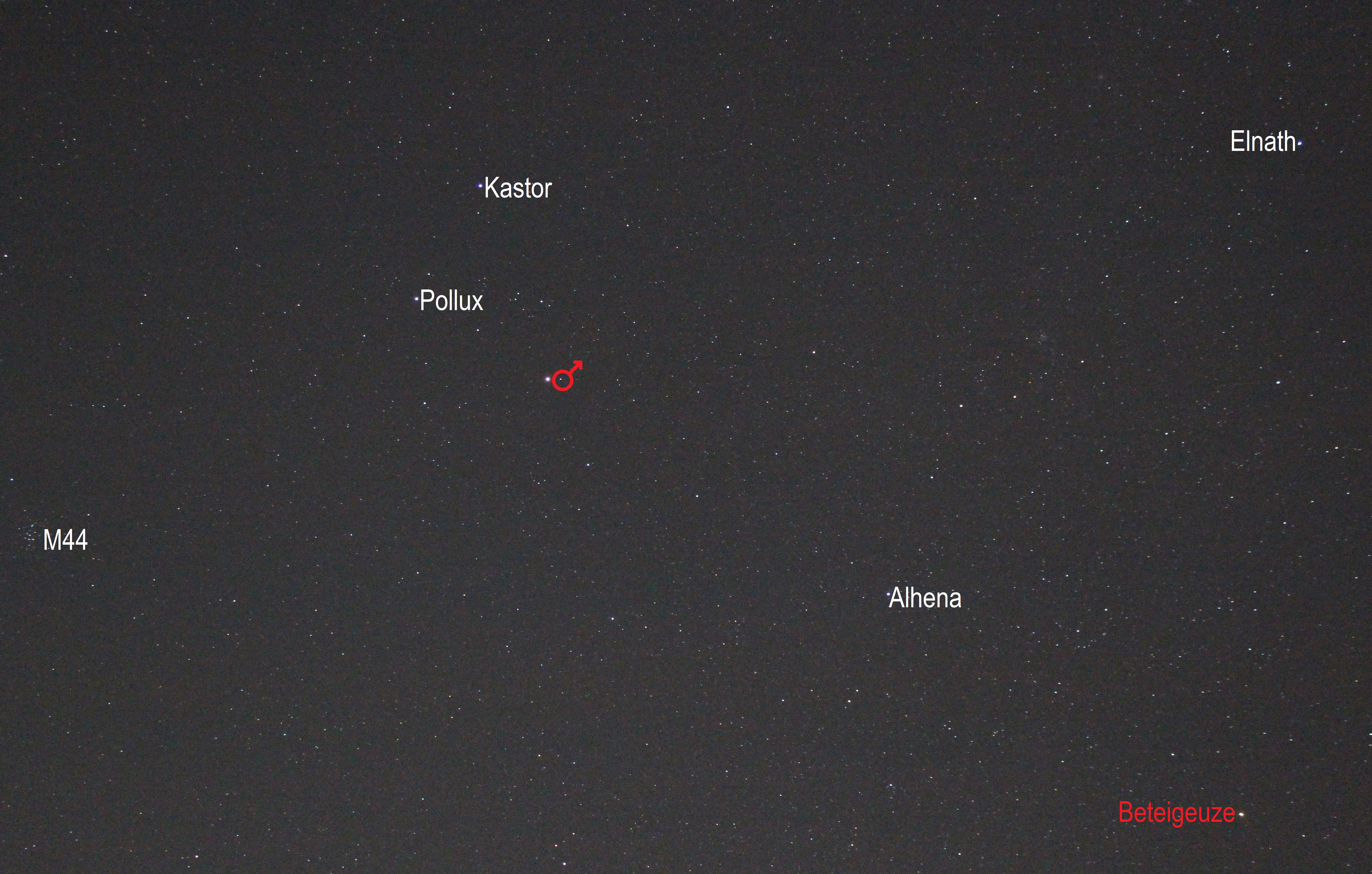 Leserbilder Astronomie: Mars im Sternbild Zwillinge (Objekte beschriftet)