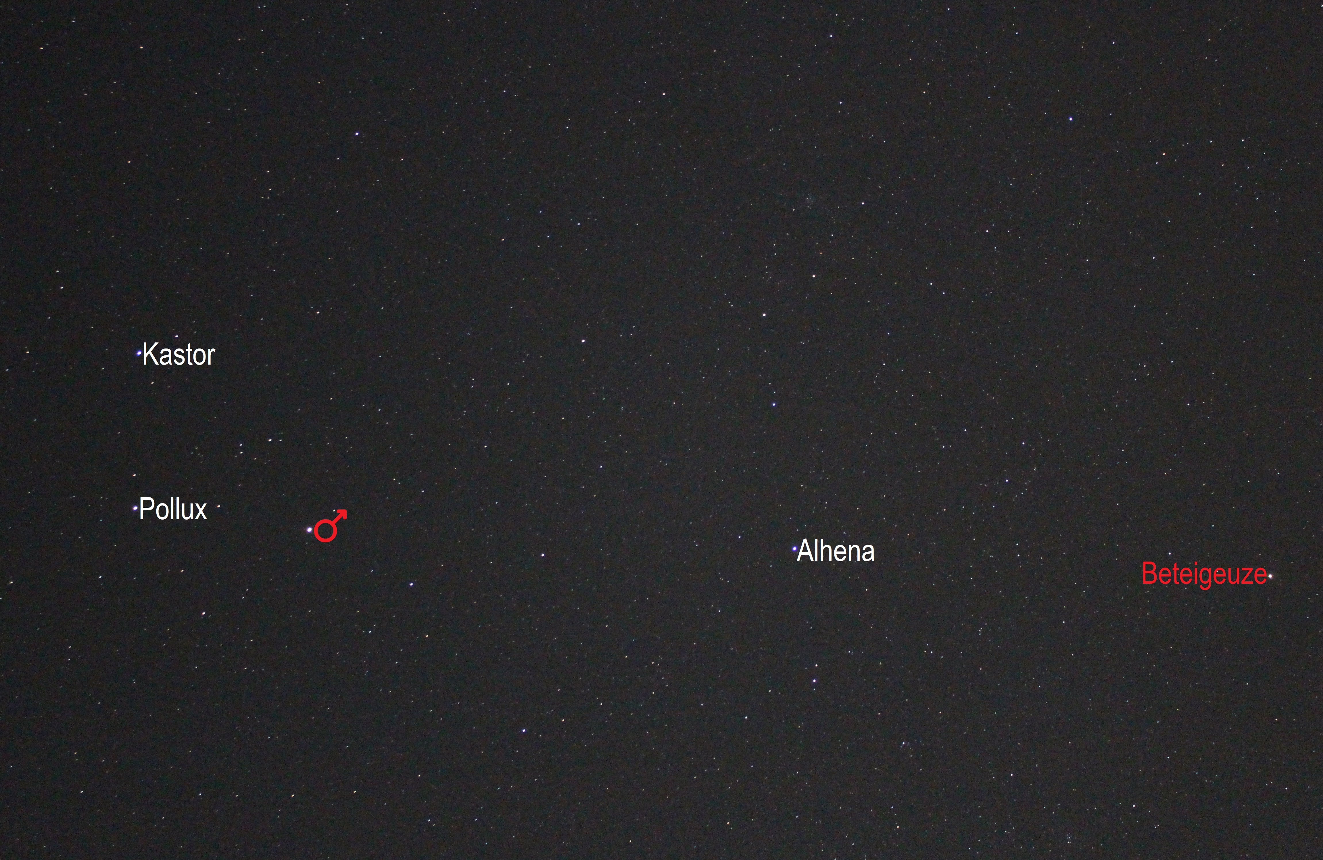 Leserbilder Astronomie: Mars im Sternbild Zwillinge (Objekte beschriftet)