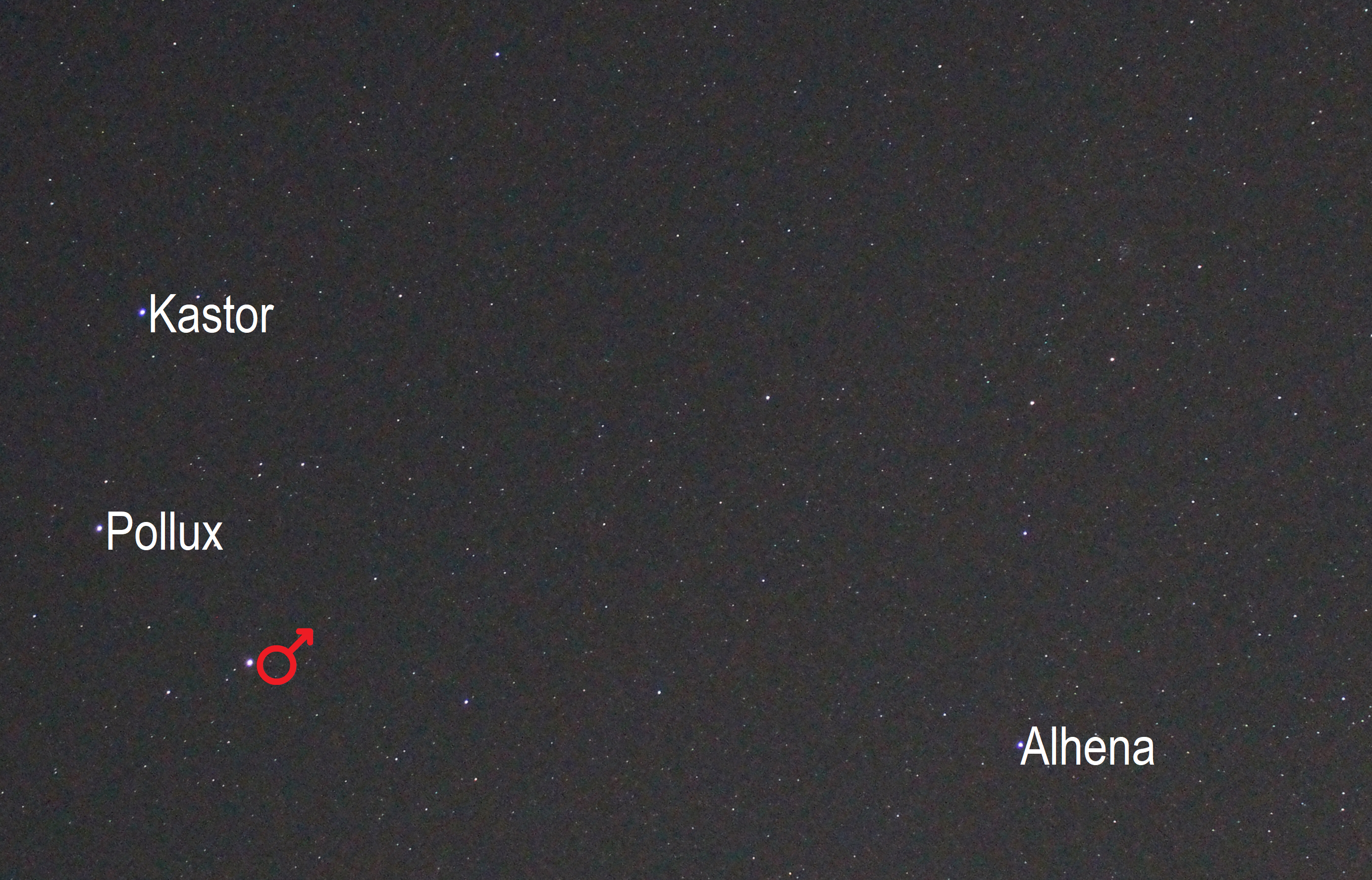 Leserbilder Astronomie: Mars im Sternbild Zwillinge (Objekte beschriftet)