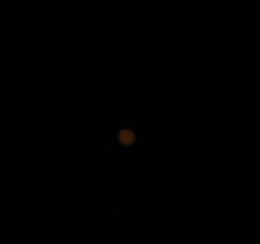 Mars, fotografiert durch einen Refraktor mit 6 cm Objektivdurchmesser, 700 mm Brennweite und 70-facher Vergrößerung.