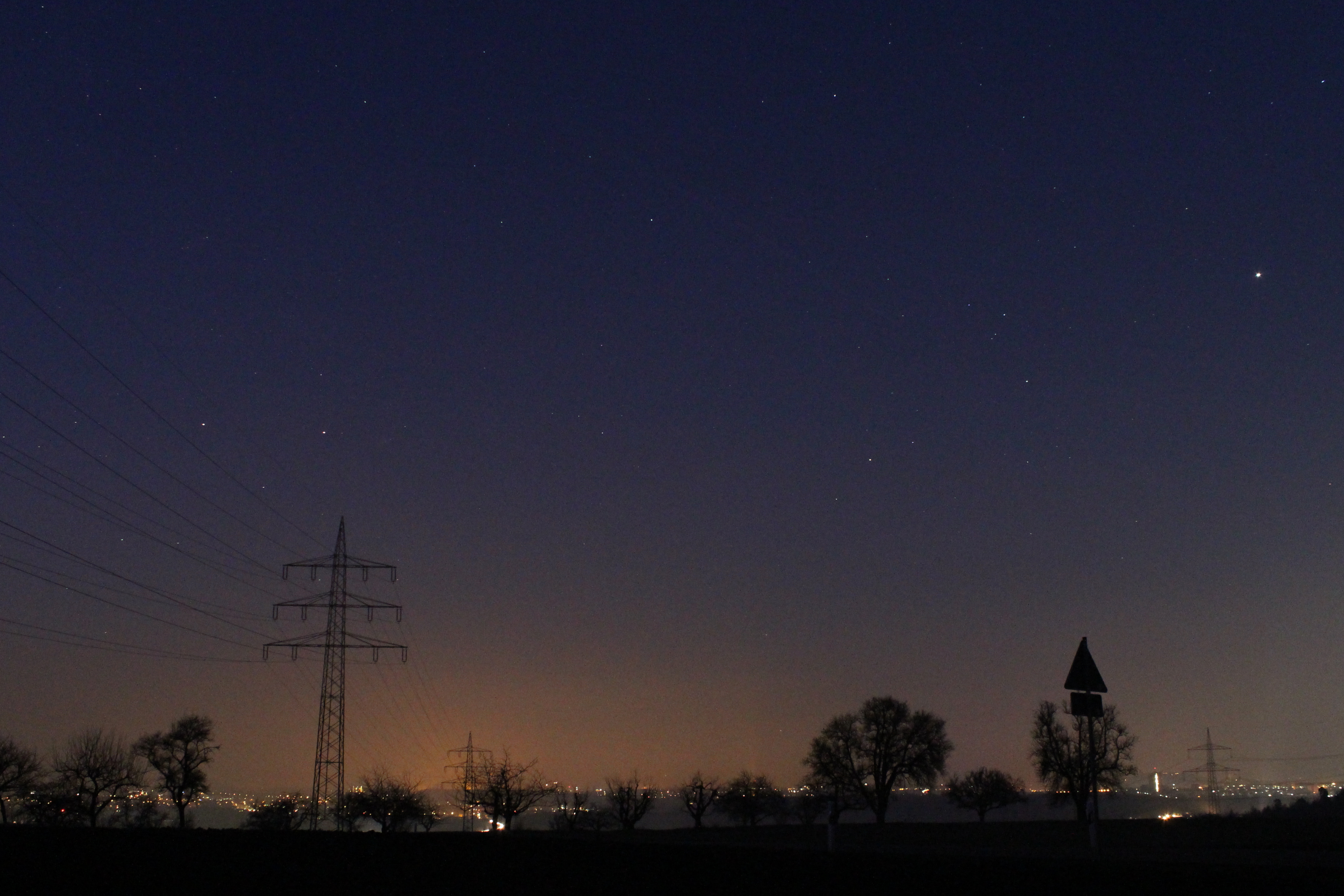 Mars, Jupiter und Saturn über Ludwigsburg in der beginnenden Morgendämmerung