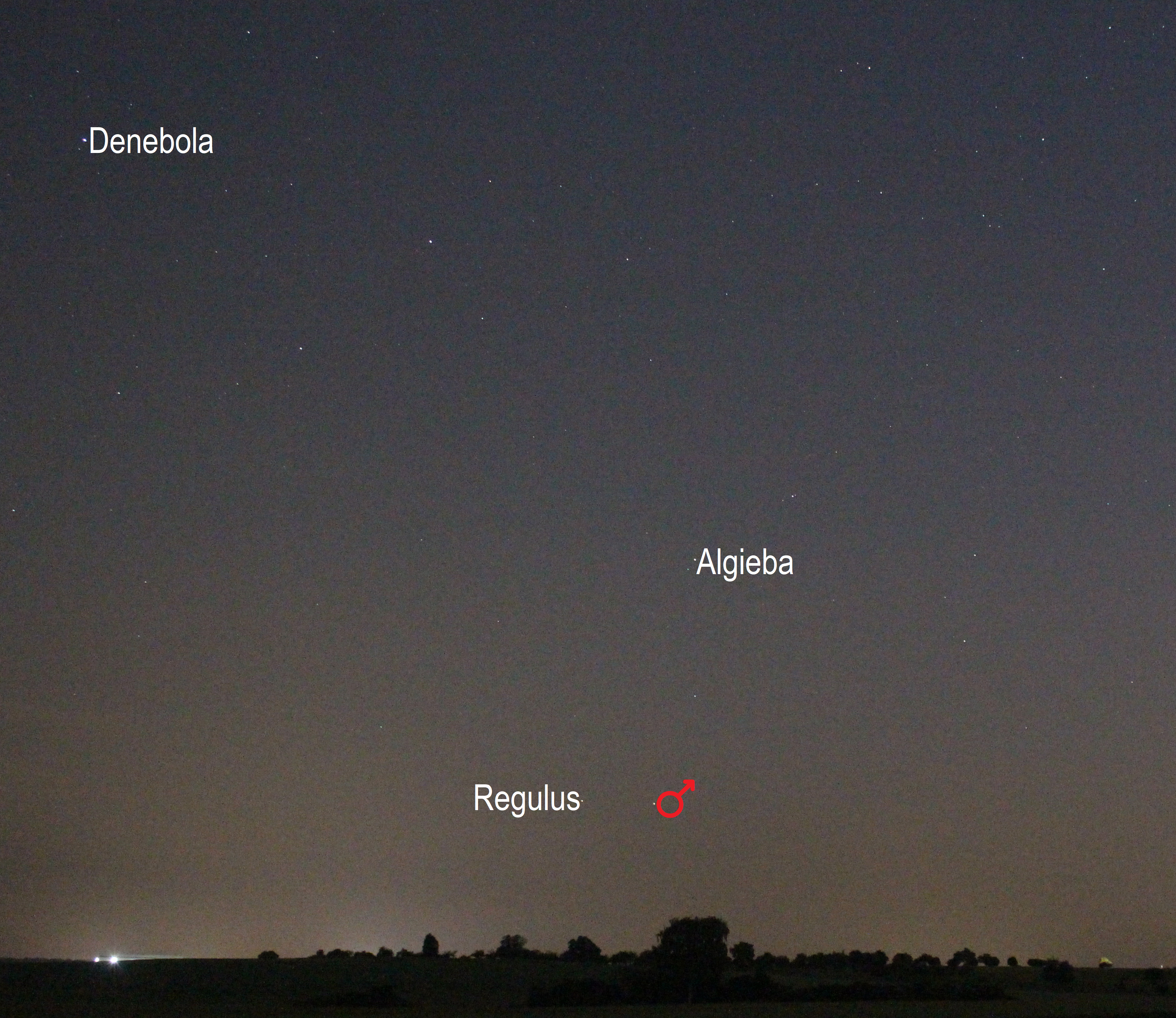 Leserbilder Astronomie: Mars nähert sich Regulus (Objekte beschriftet)
