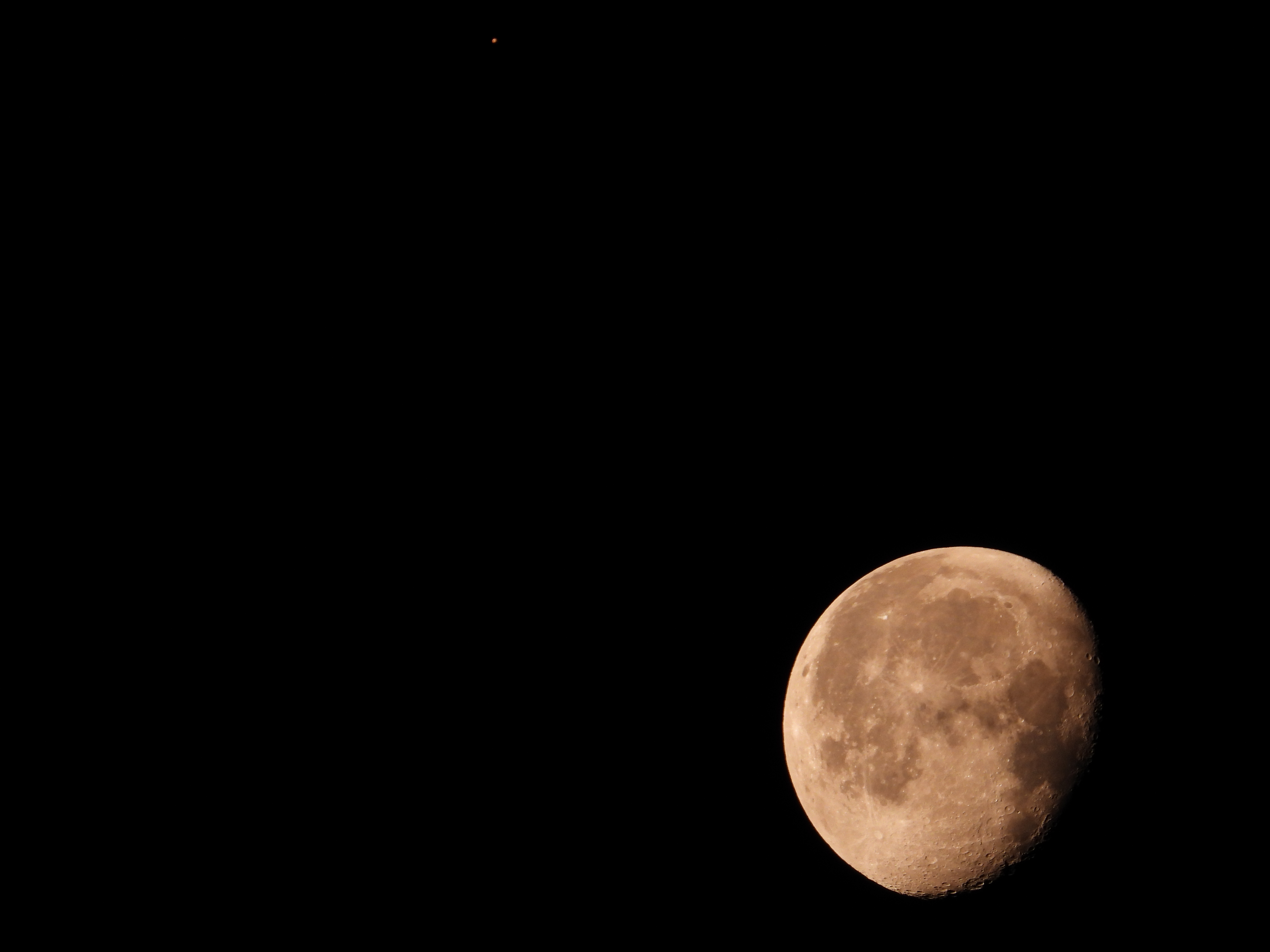 In der Nacht vom 5. zum 6. September 2020 fotografierte ich auf der Fahrt vom Atlantik nach Bayern der Mars sehr nahe am Mond, auf einer Autobahnraststätte mit Kamera aufgelegt am Autodach. Film davon, leicht verwackelt, auf: https://youtu.be/vjpsgI-oQ78
