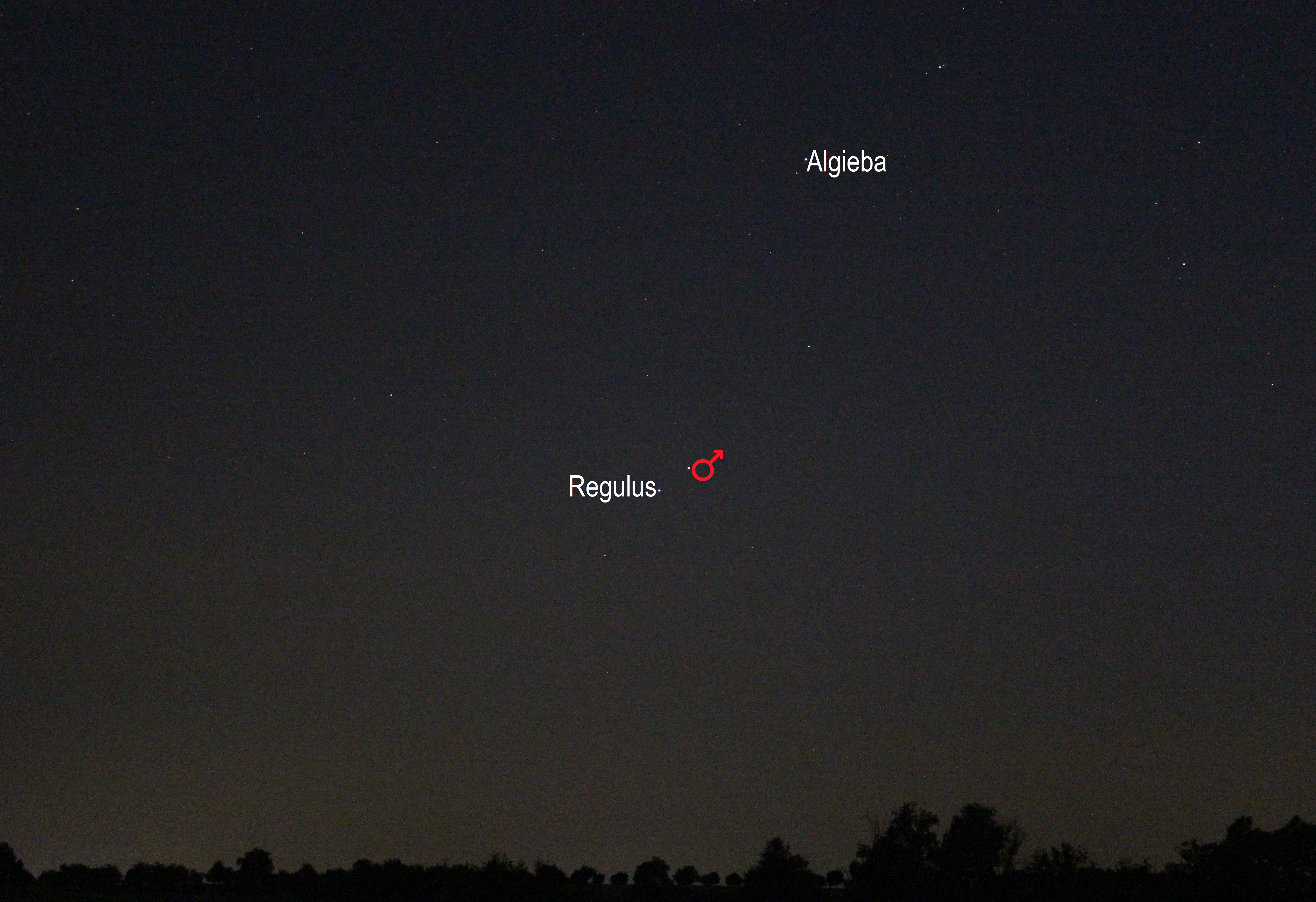 Leserbilder Astronomie: Mars nahe Regulus (Objekte beschriftet)