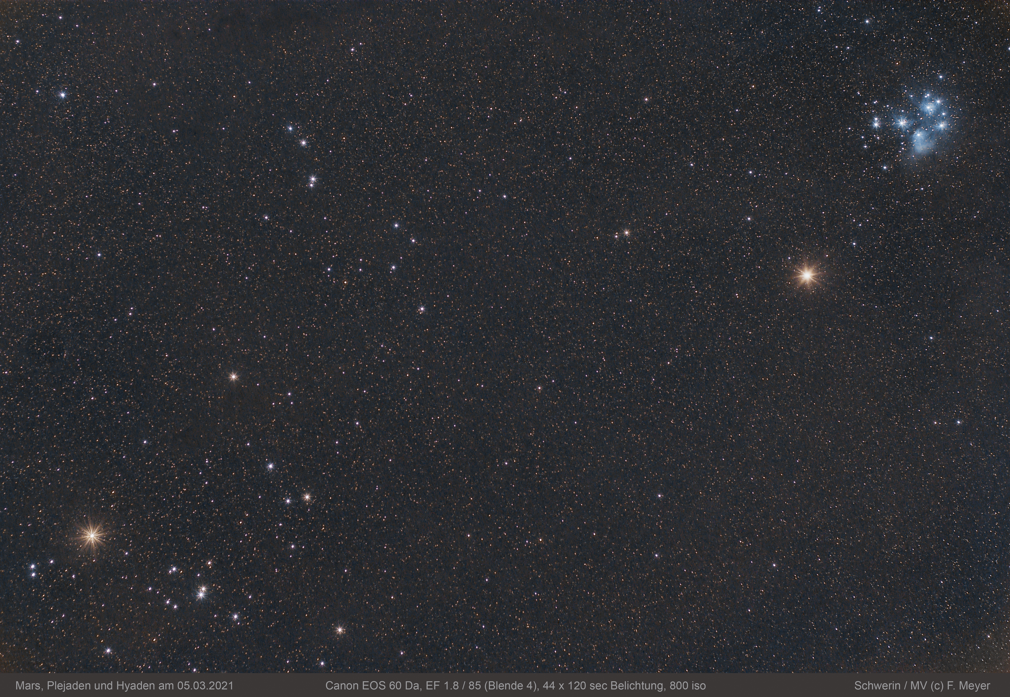 Leserbilder Astronomie: Mars, Plejaden und Hyaden am 5. März 2021
