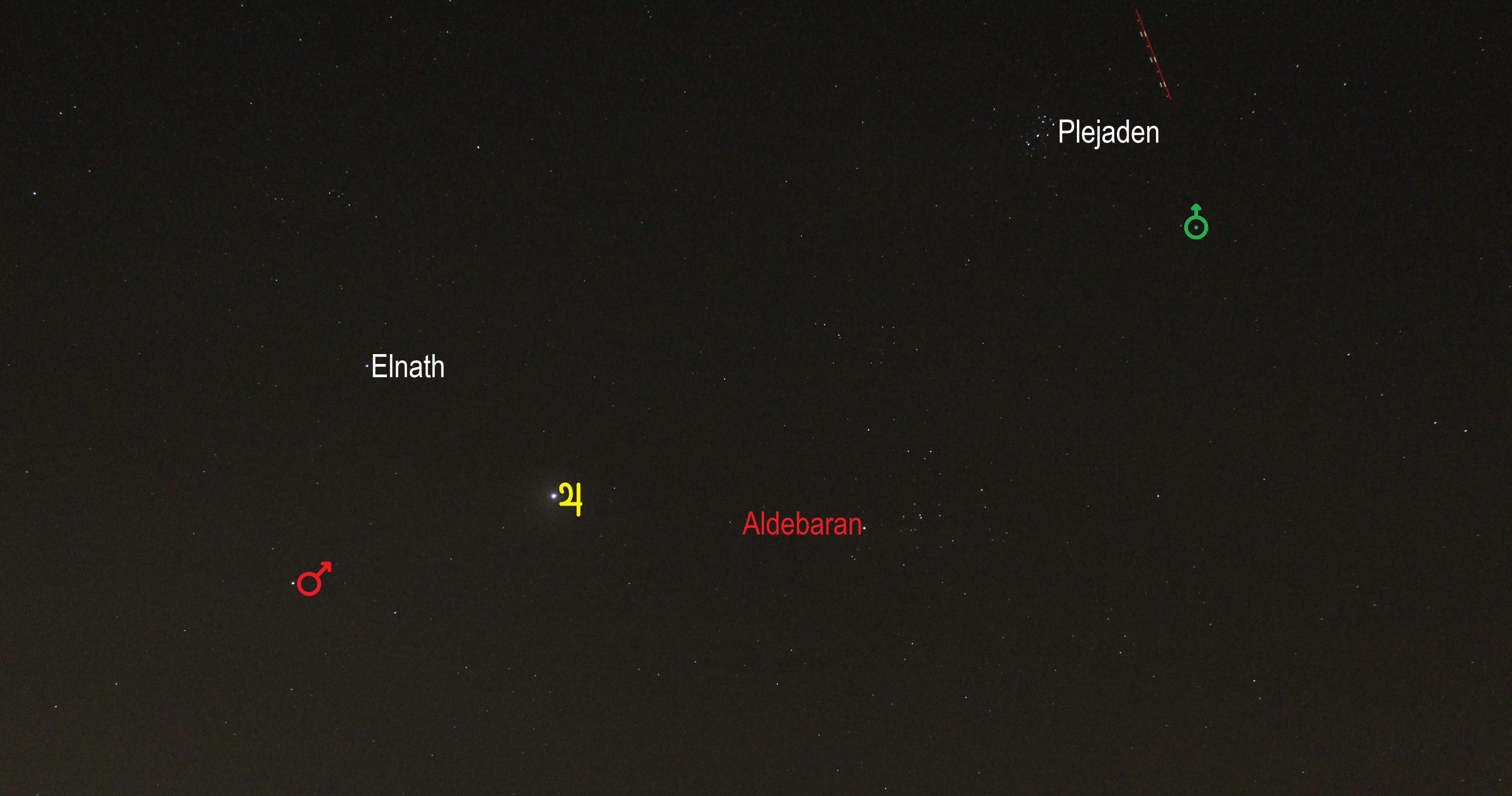 Leserbilder Astronomie: Mars und Jupiter im Sternbild Stier (Objekte beschriftet)