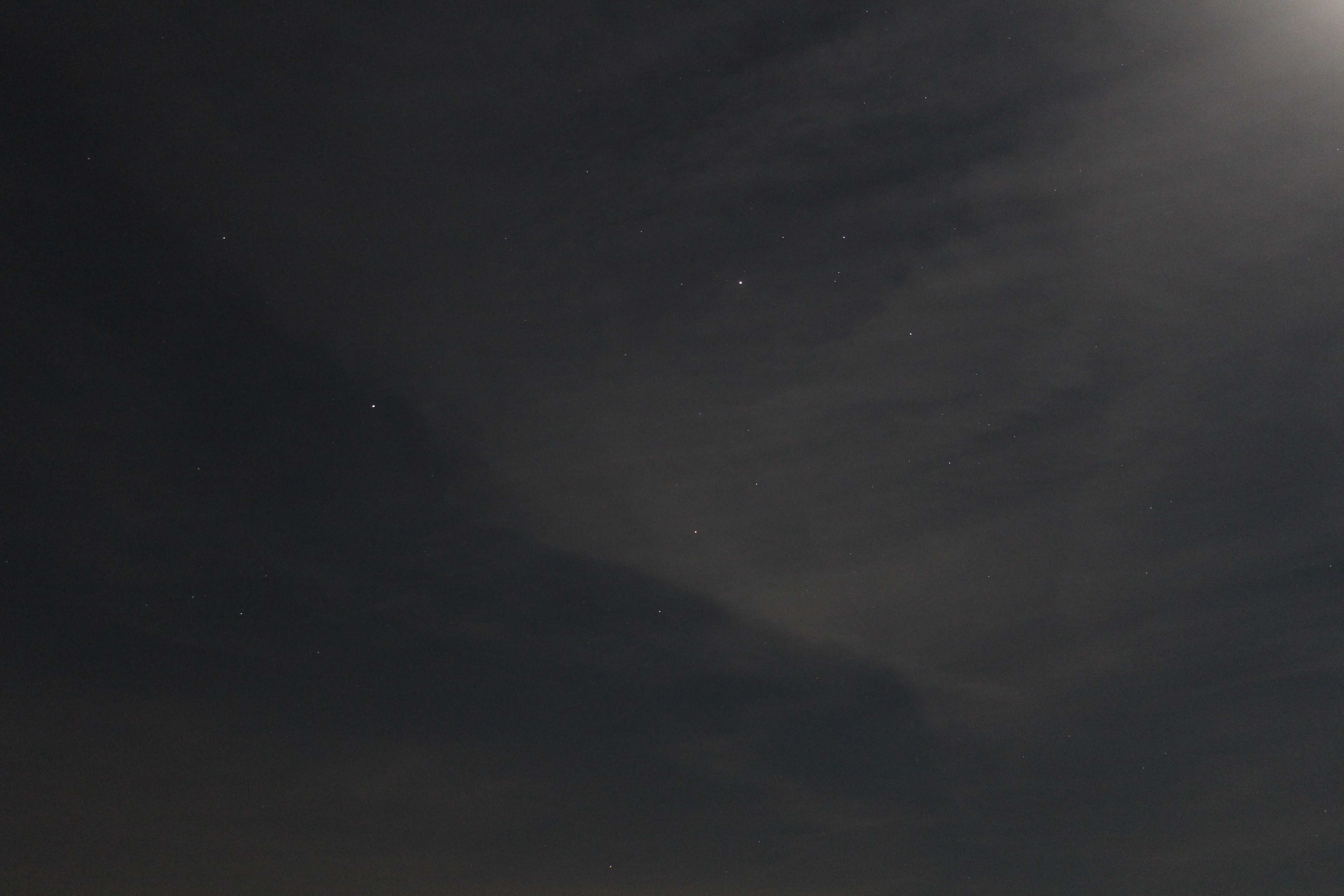 Mars und Saturn, fotografiert nördlich von Reutlingen. Leider zogen Zirruswolken durch das Bild, in denen sich das Mondlicht brach.