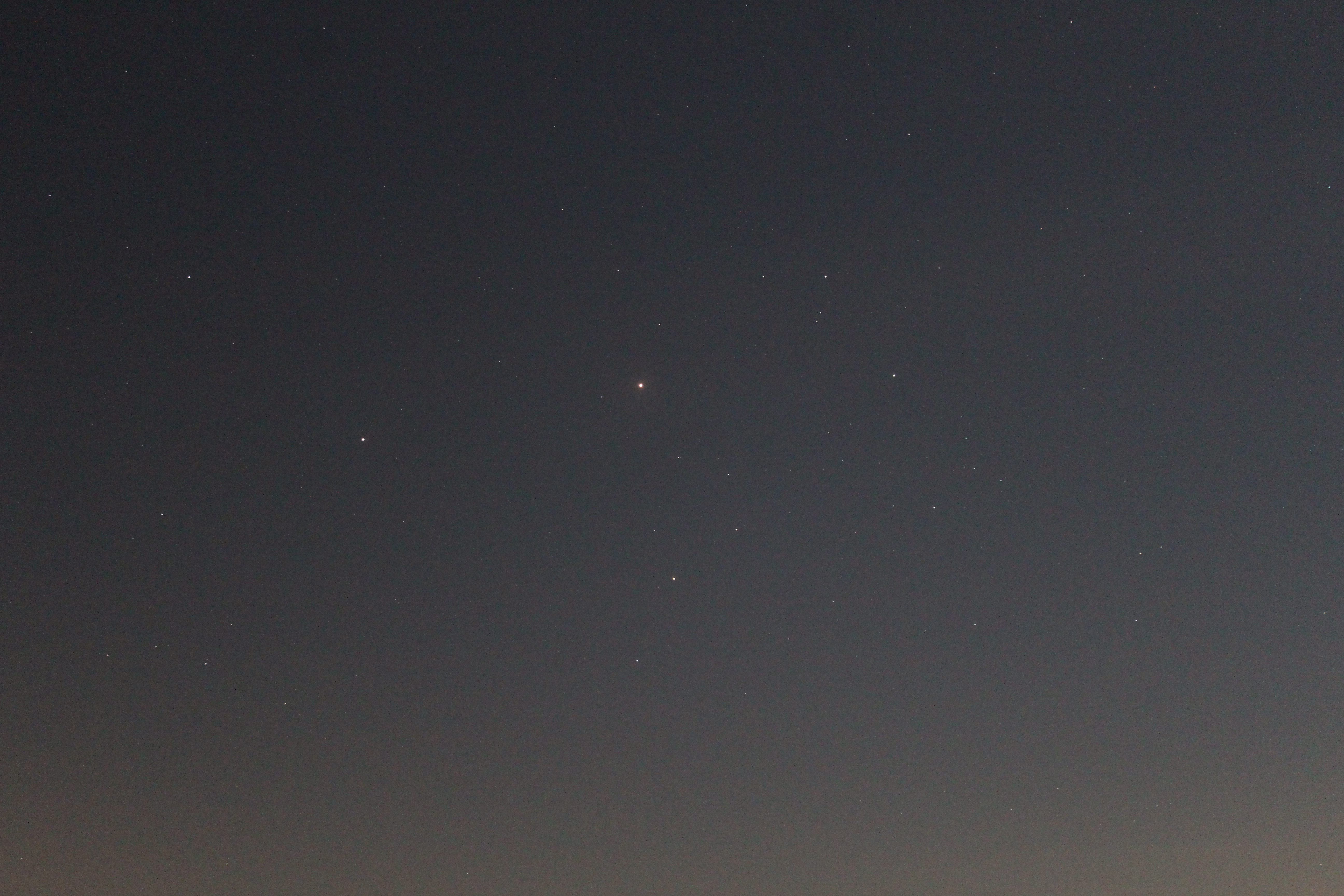 Mars und Saturn im Grenzgebiet der Sternbilder Skorpion und Schlangenträger, ein Tag nach der Quasikonjunktion