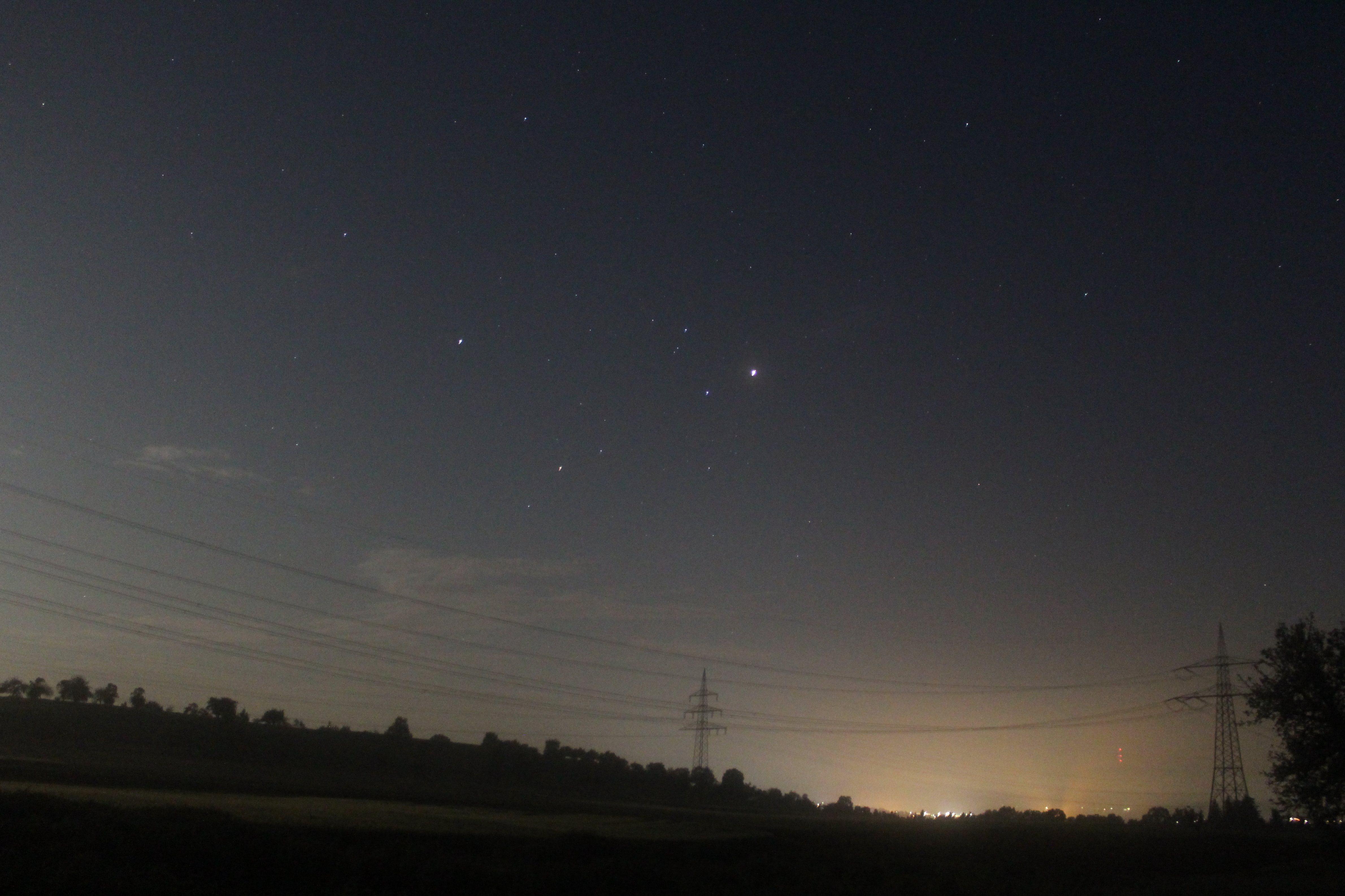 Mars, Saturn und der Kopf des Sternbildes Skorpion mit Antares über Balingen