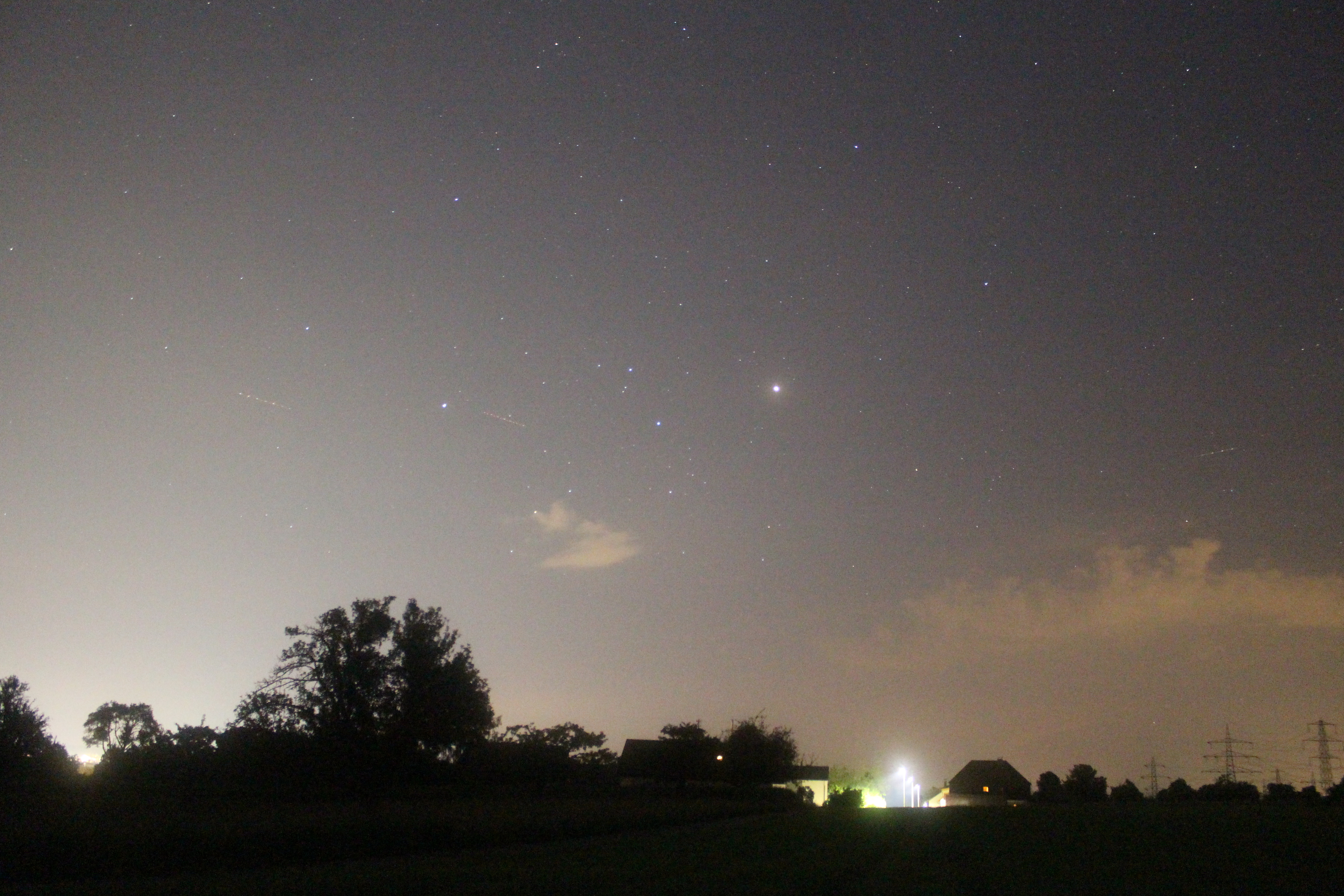 Mars und Saturn mit dem Kopf des Sternbilds Skorpion über Maichingen.