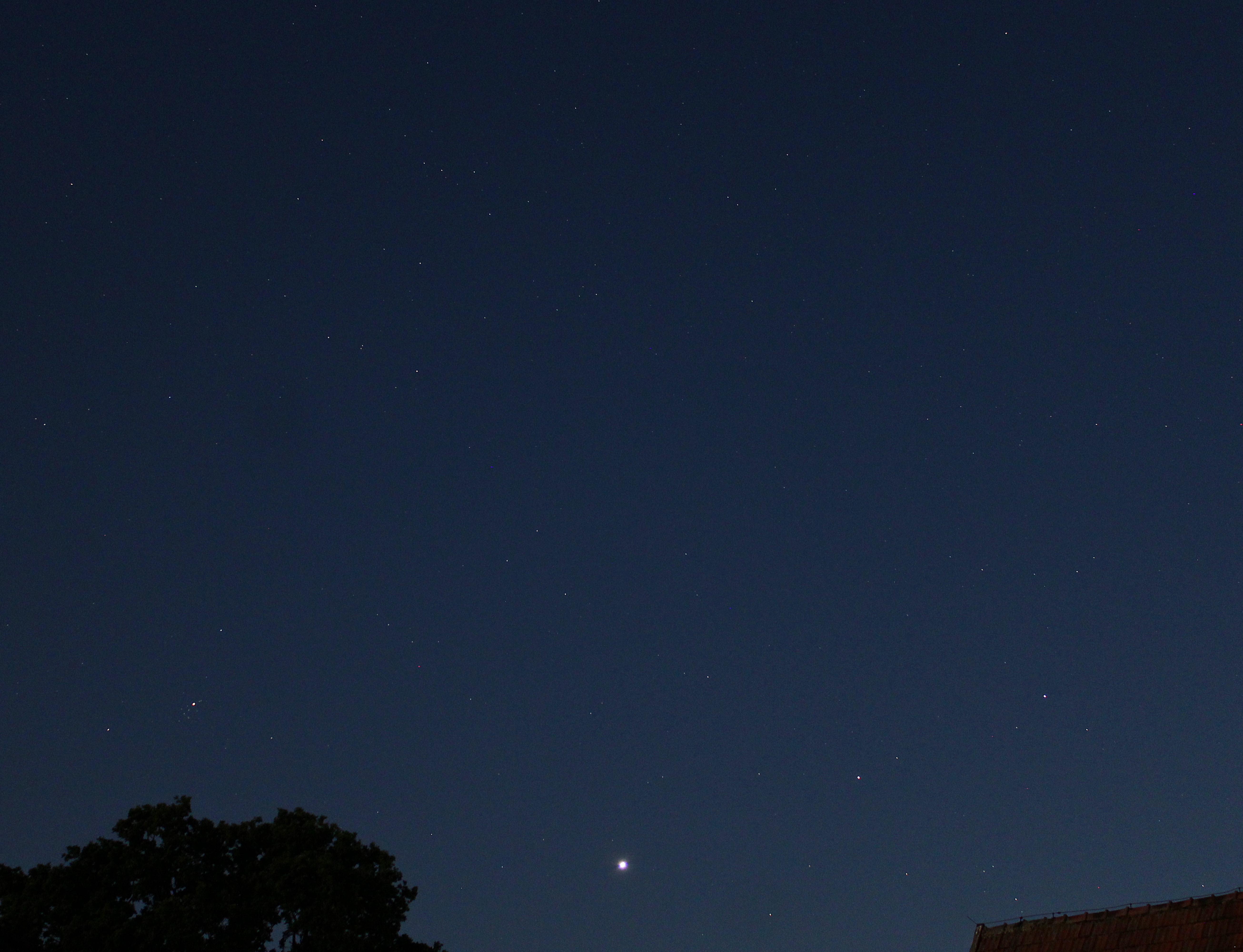 Von links nach rechts: Mars, Venus und die Sterne Pollux und Kastor vom Sternbild Zwillinge. Gestern Abend/Nacht war einer der Gelegenheiten den offenen Sternhaufen Messier 44 mit Mars zu fotografieren. Ich wagte den Versuch, trotzt störendes Mondlicht. Hier das Ergebnis.