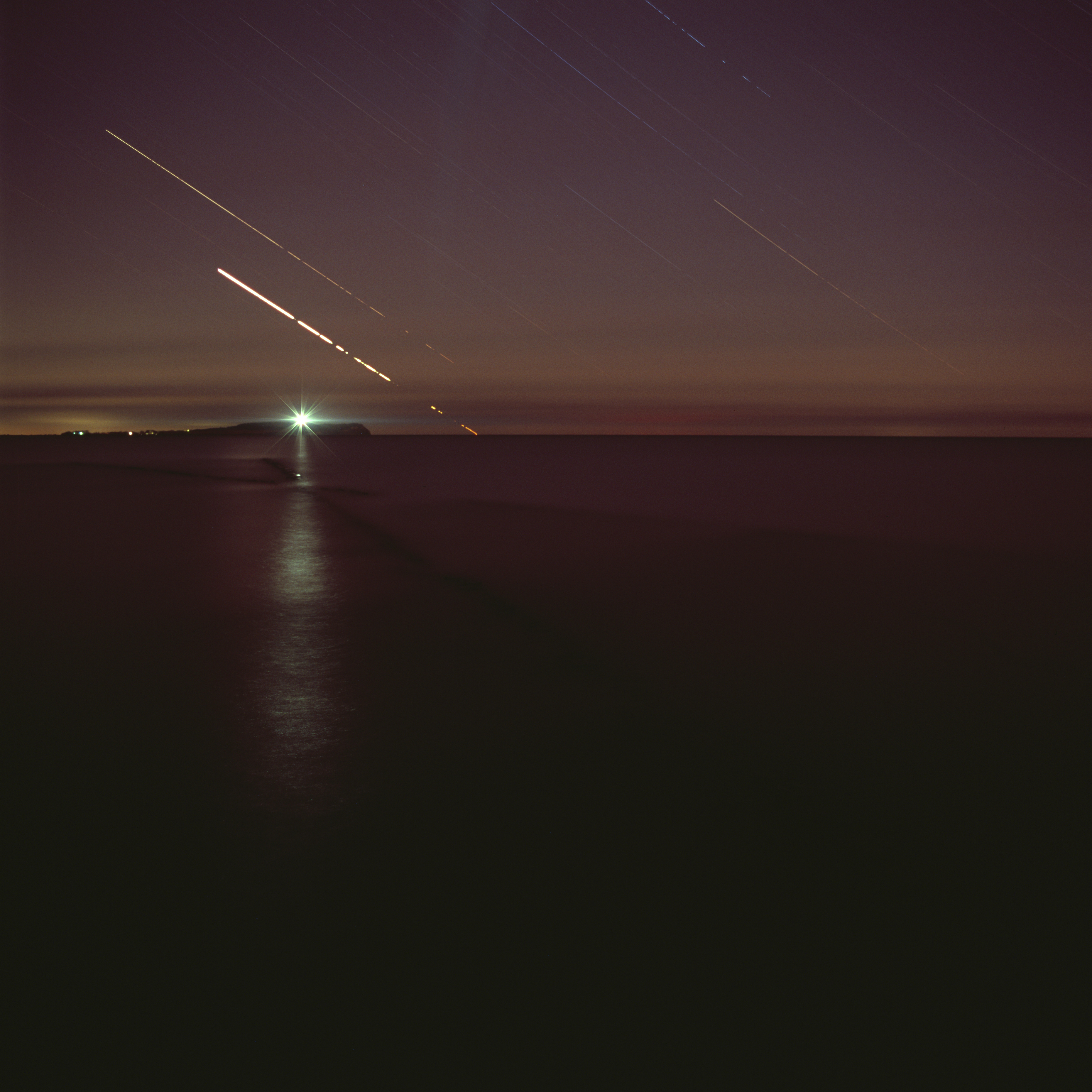 Mars- und Venusuntergang Mitte Januar 2017 über der Insel Hiddensee mit dem Leuchtturm "Dornbusch", 19:45 bis 20:45 Uhr MEZ