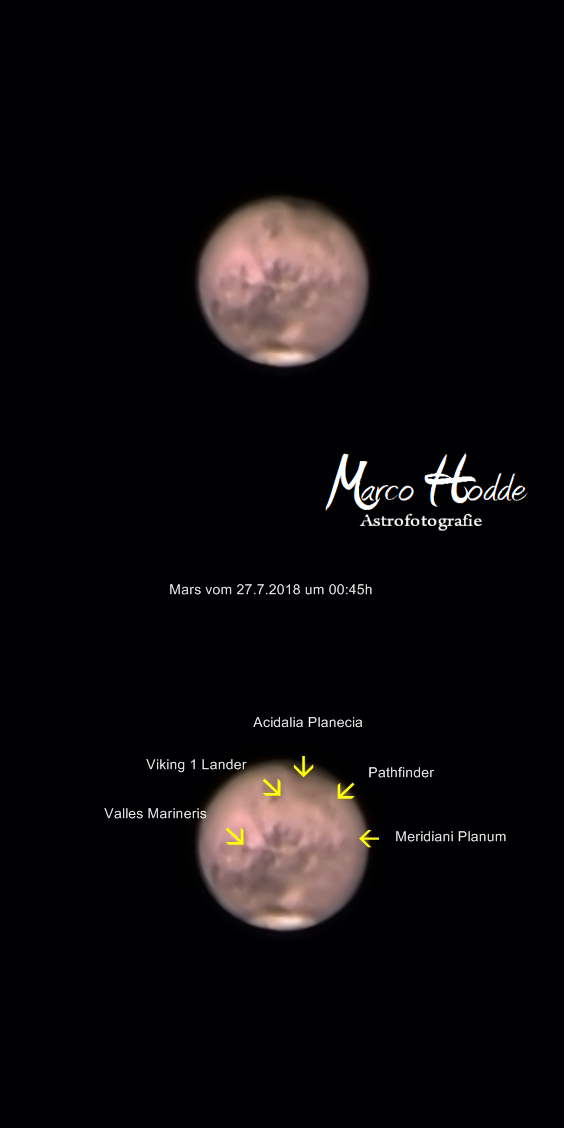 Leserbilder Astronomie: Mars vom 27.7.2018