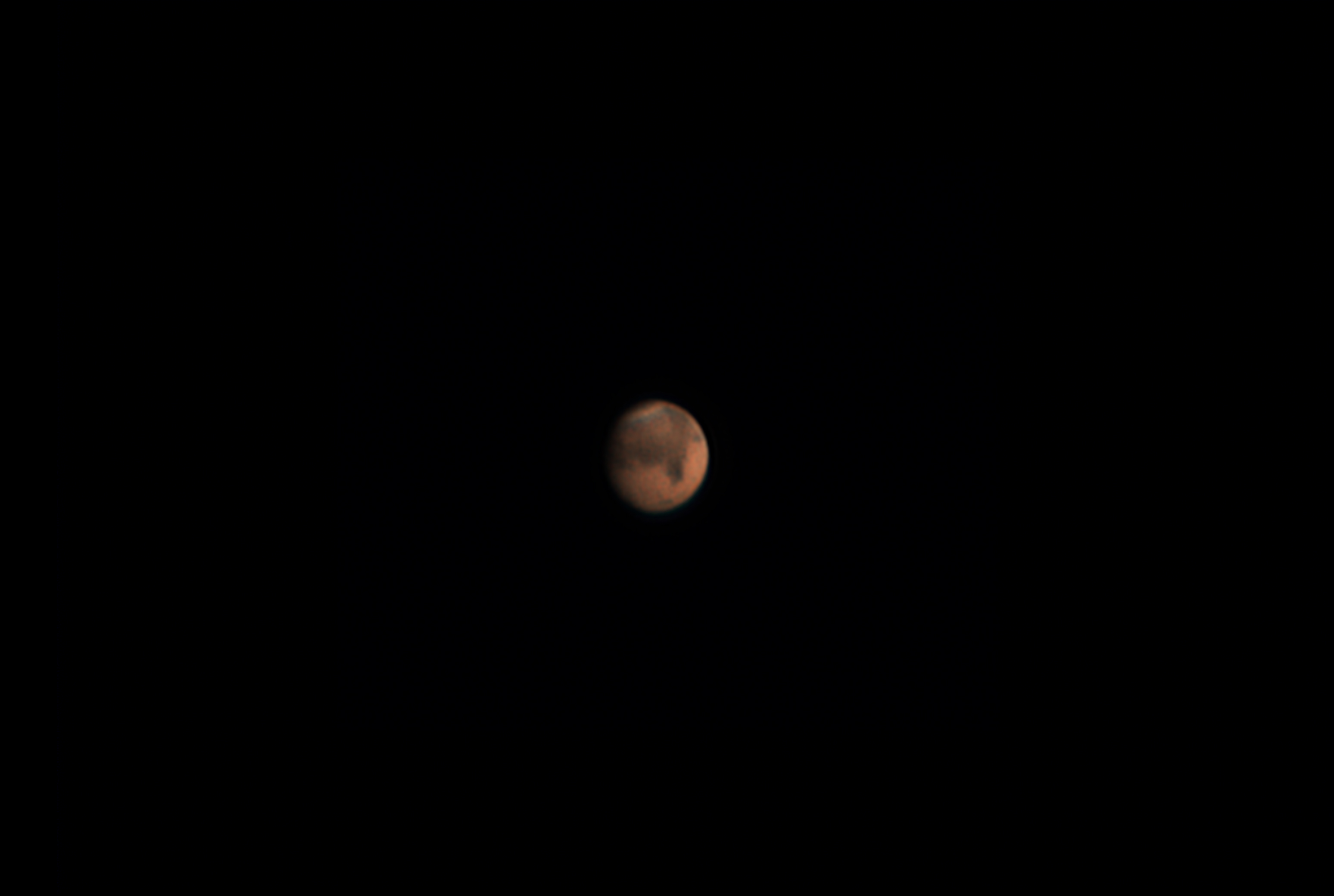 Kurz vor Sonnenaufgang verzog sich die Dunstschicht doch noch, und ich konnte bei gutem Seeing dieses Bild vom Planeten Mars machen. Langsam wird es ja was mit Mars.