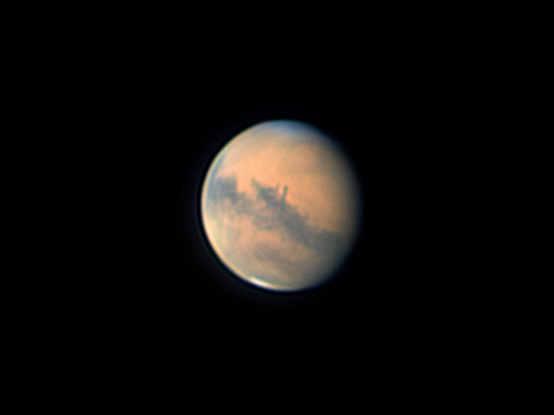 Der 10-Zoll-Schaer-Refraktor auf der Volkssternwarte München ist für die Planetenfotografie bestens geeignet. Die Aufnahme erfolgte mit f(Ä) = 6,4 m und mit RGB-Filter.