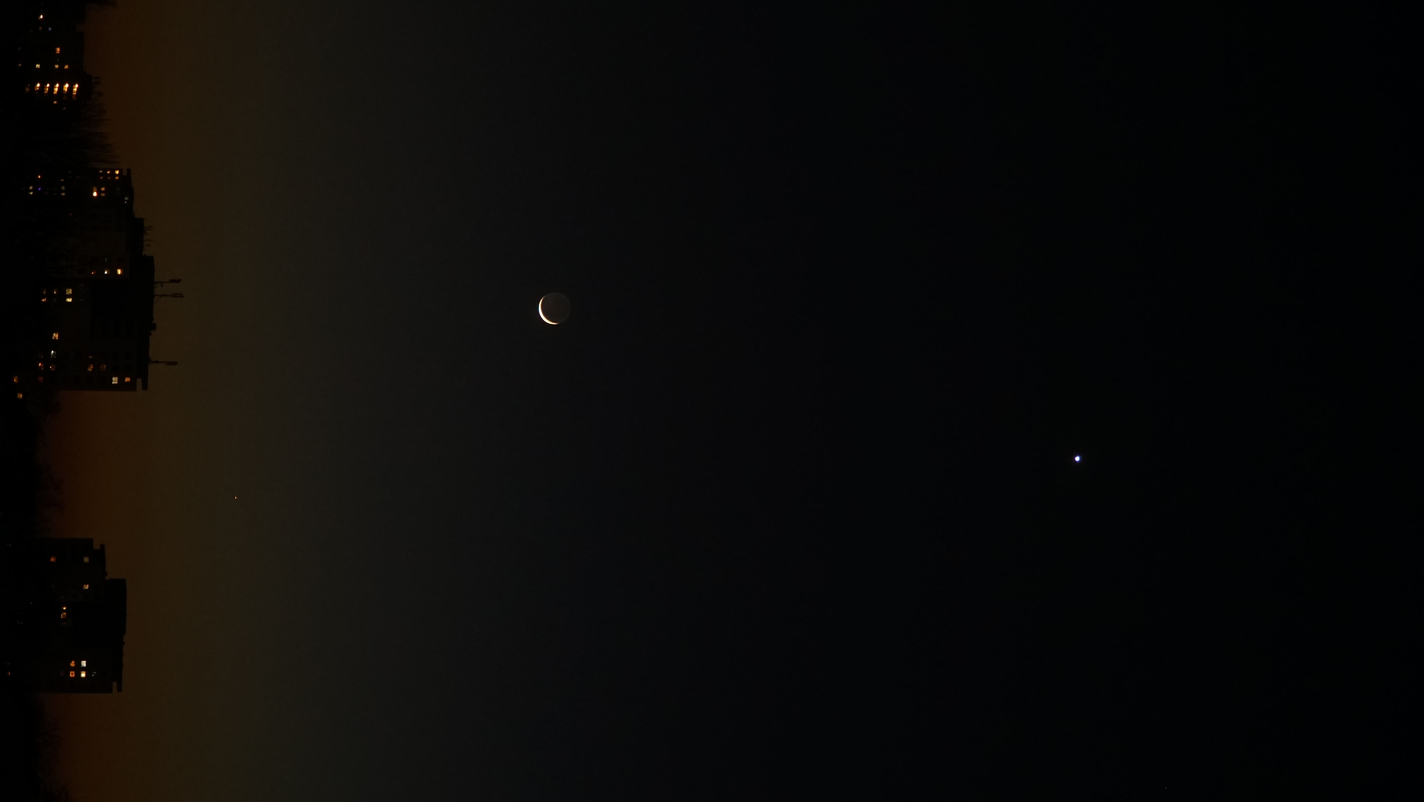 Dank des Hinweises der SuW 3/2025 ergeht es mir nicht, wie angeblich, dem großen Astronomen Kopernikus, der nie den Merkur gesehen haben soll. Am 1. März 2025, 18:46 Uhr gelang mit das Foto mit Merkur zwischen den und etwas oberhalb der beiden Hochhäuser. Die Mondsichel nach Neumond und die Venus bei perfekter Sichtbarkeit vervollständigen die seltene Konstellation. Die Aufnahme wurde mit einer Sony Alpha 7R (7360 x 4912 Pixel) vom Otto-Lilienthalschen Fliegeberg in Berlin-Lichterfelde gemacht. Hier hat der Flugpionier im Jahr 1894 einen Hügel für seine Flugversuche aufschütten lassen. Heute ist der Fliegeberg ein Denkmal, der gern von Liebespaaren und Hobbyastronomen besucht wird.
