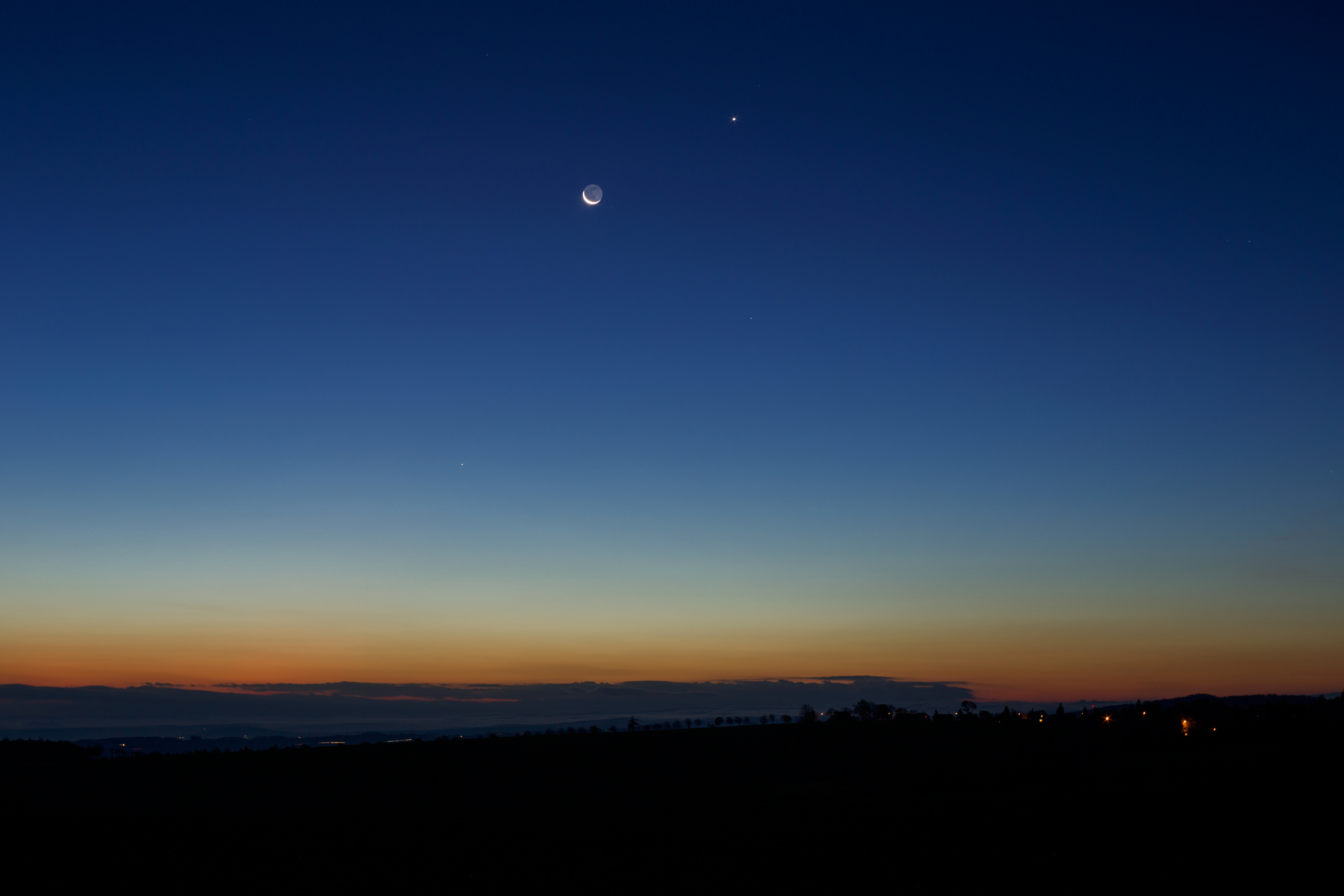 Leserbilder Astronomie: Merkur, Mondsichel, Venus und Spica