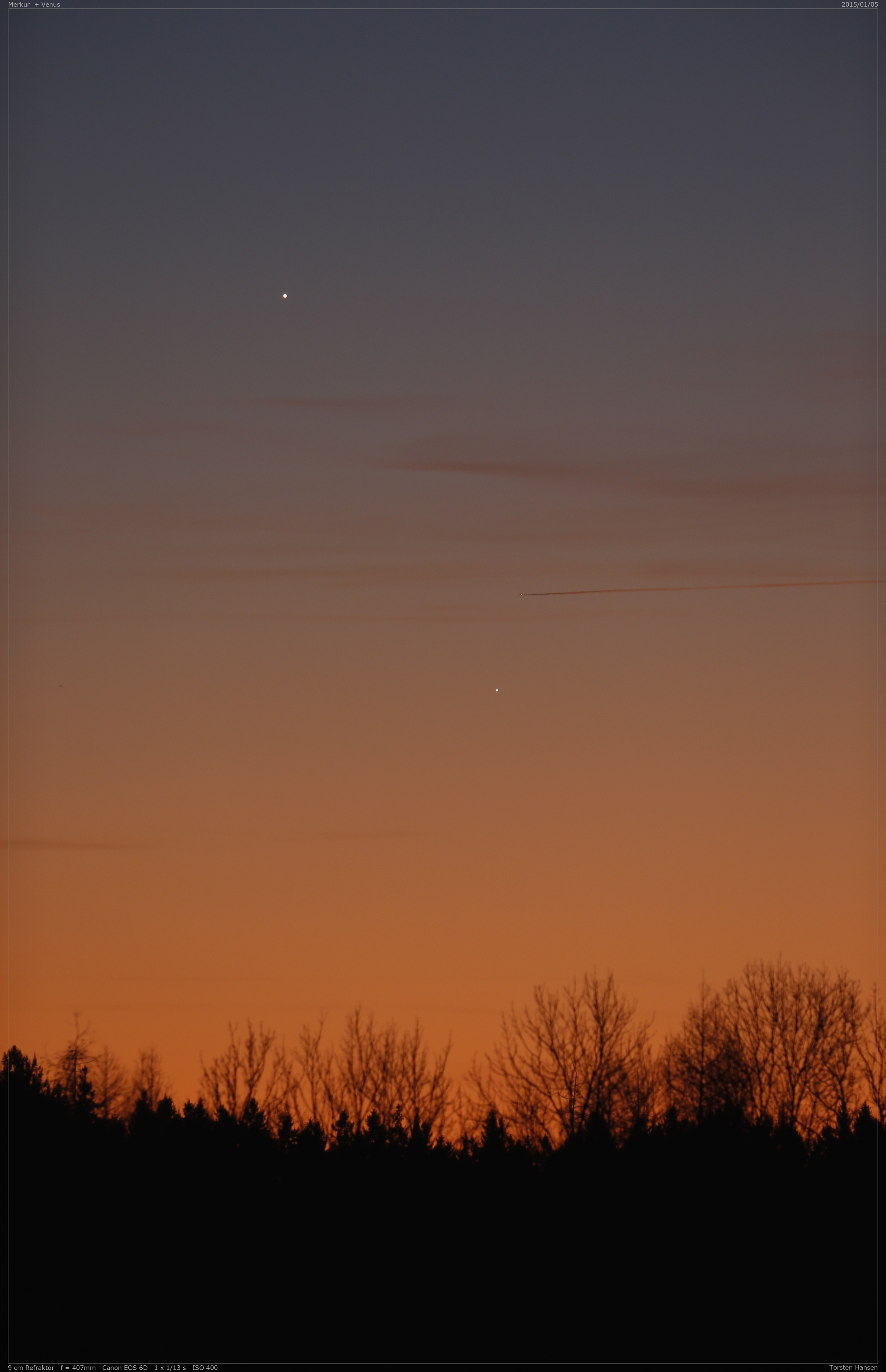 Bei sehr guter Horizonttransparenz und einem tollen Farbenspiel zeigten sich Merkur und Venus nur knapp 1,5 Grad voneinader entfernt.