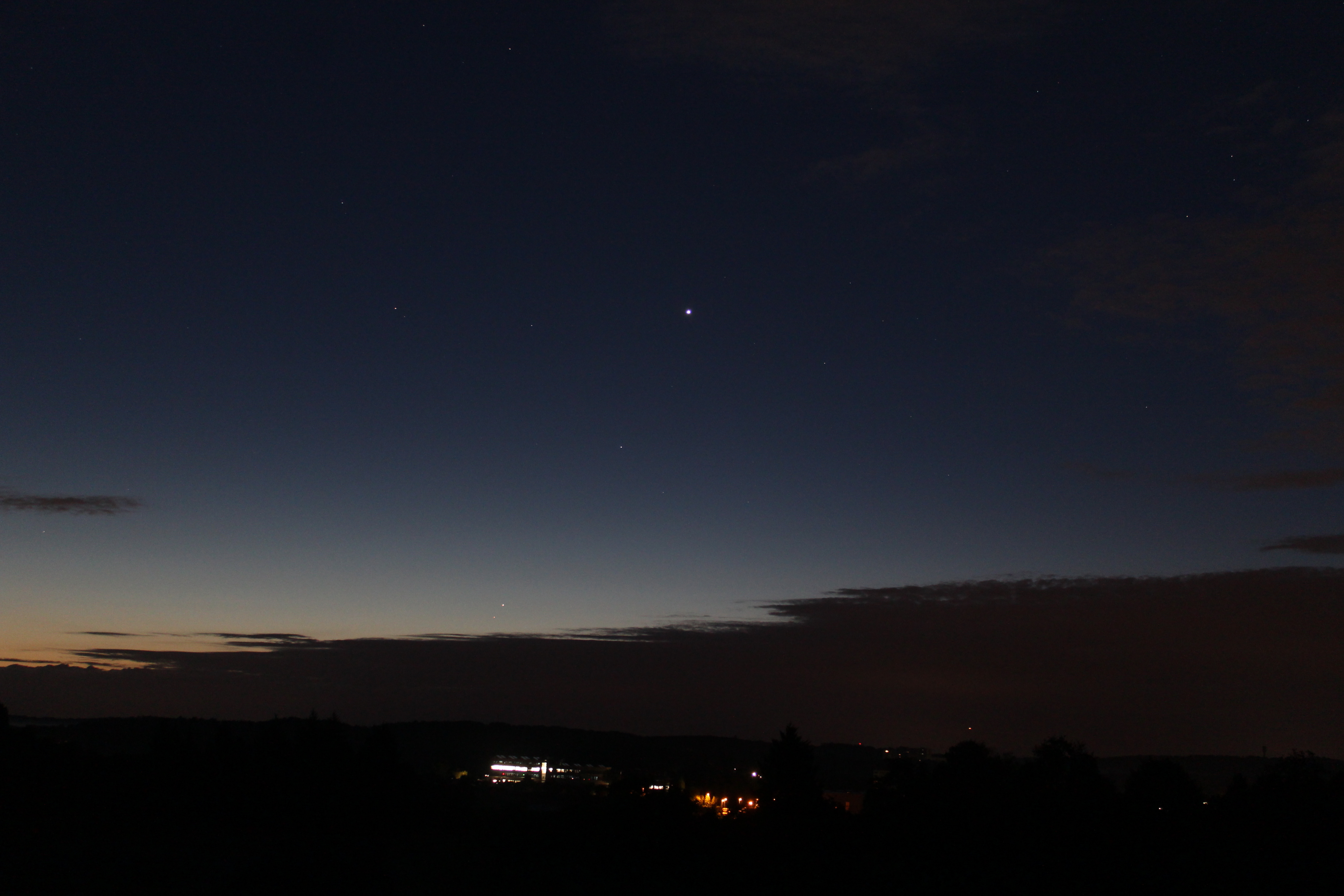 Bei klarem Himmel konnte ich in den Morgenstunden des 16. September Merkur, Venus, Regulus und Mars fotografieren. Merkur war sehr gut sichtbar, während Mars freiäugig kaum erkennbar war.