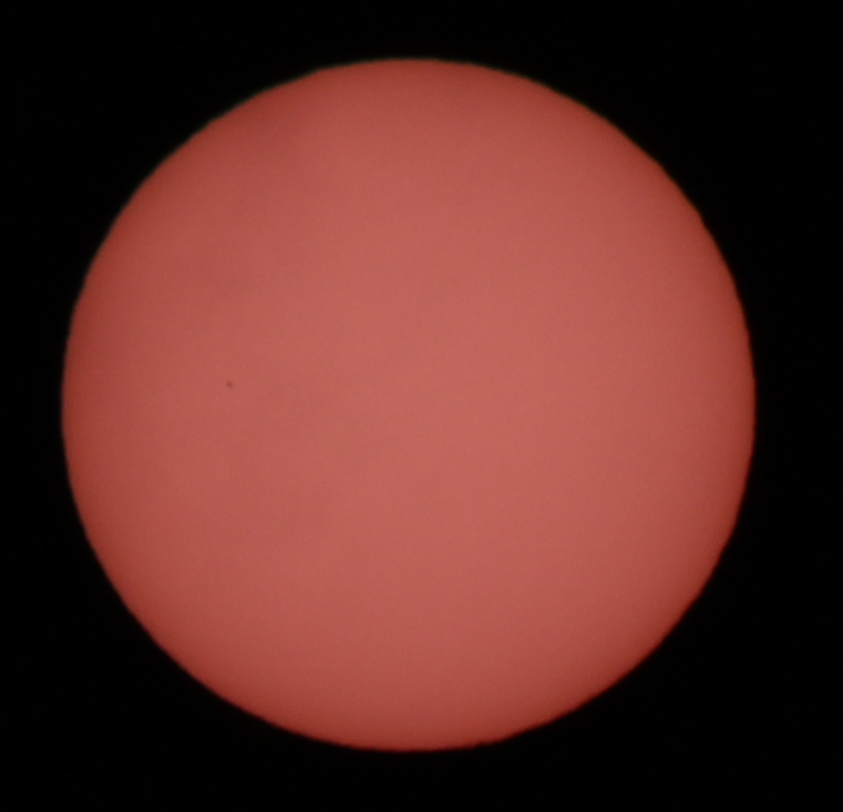 Merkurdurchgang am 11. November 2019, aufgenommen mit größeren Blendenwert und längerer Belichtungszeit als das zuvor gepostete Foto. Die aufziehenden Wolken verhinderten leider weitere Bilder vom Transit.
