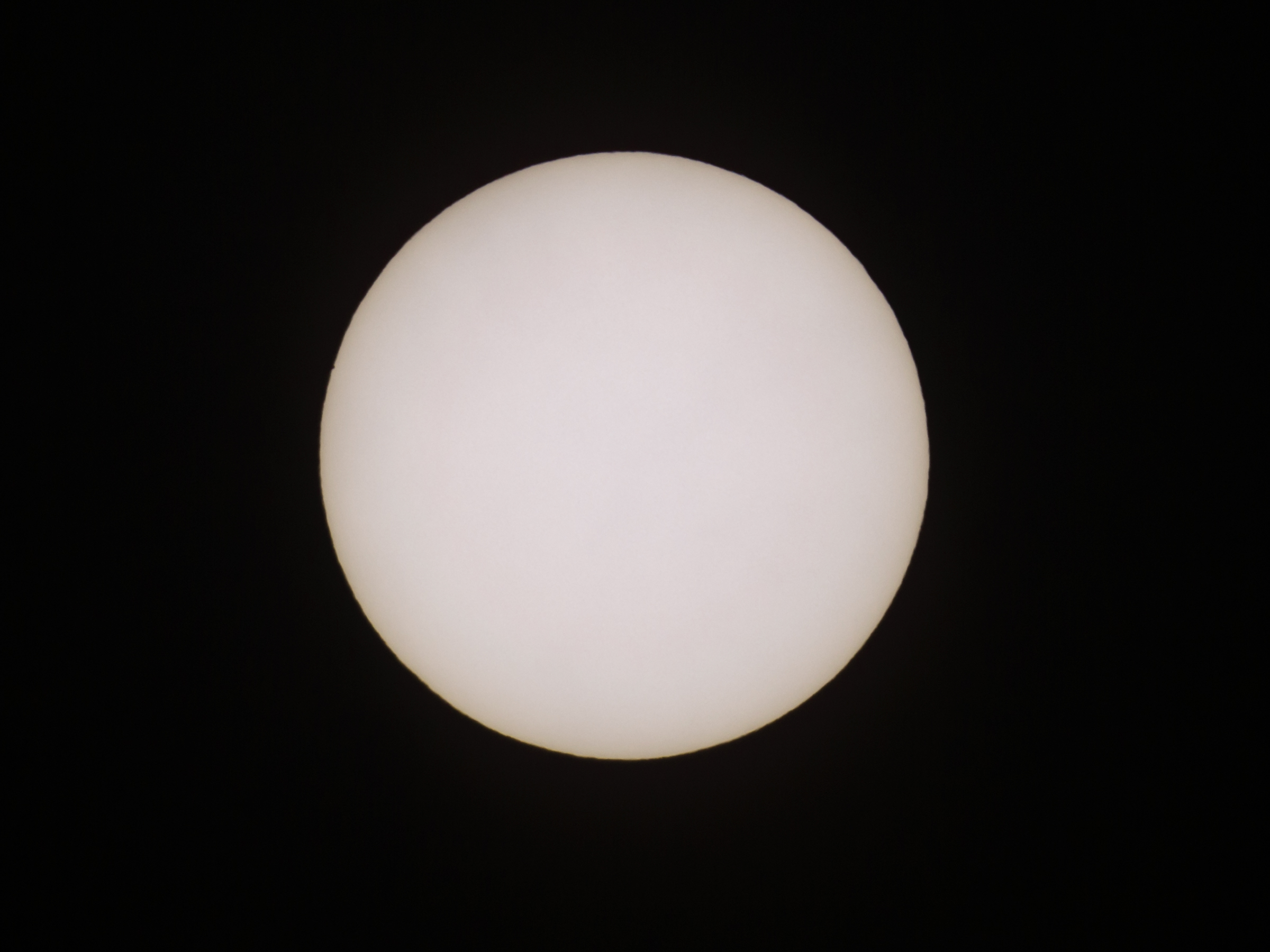 Pünktlich zum Beginn des Merkurtransits über die Sonne lichtete sich der Hochnebel und gab die Sicht auf das Schauspiel vor unserem Heimatstern frei. Die Luftunruhe war leider sehr stark, sodass Merkur manchmal regelrecht vor der Sonne tanzte. Hier ist der Eintritt um 13:36:20 Uhr MEZ dokumentiert.