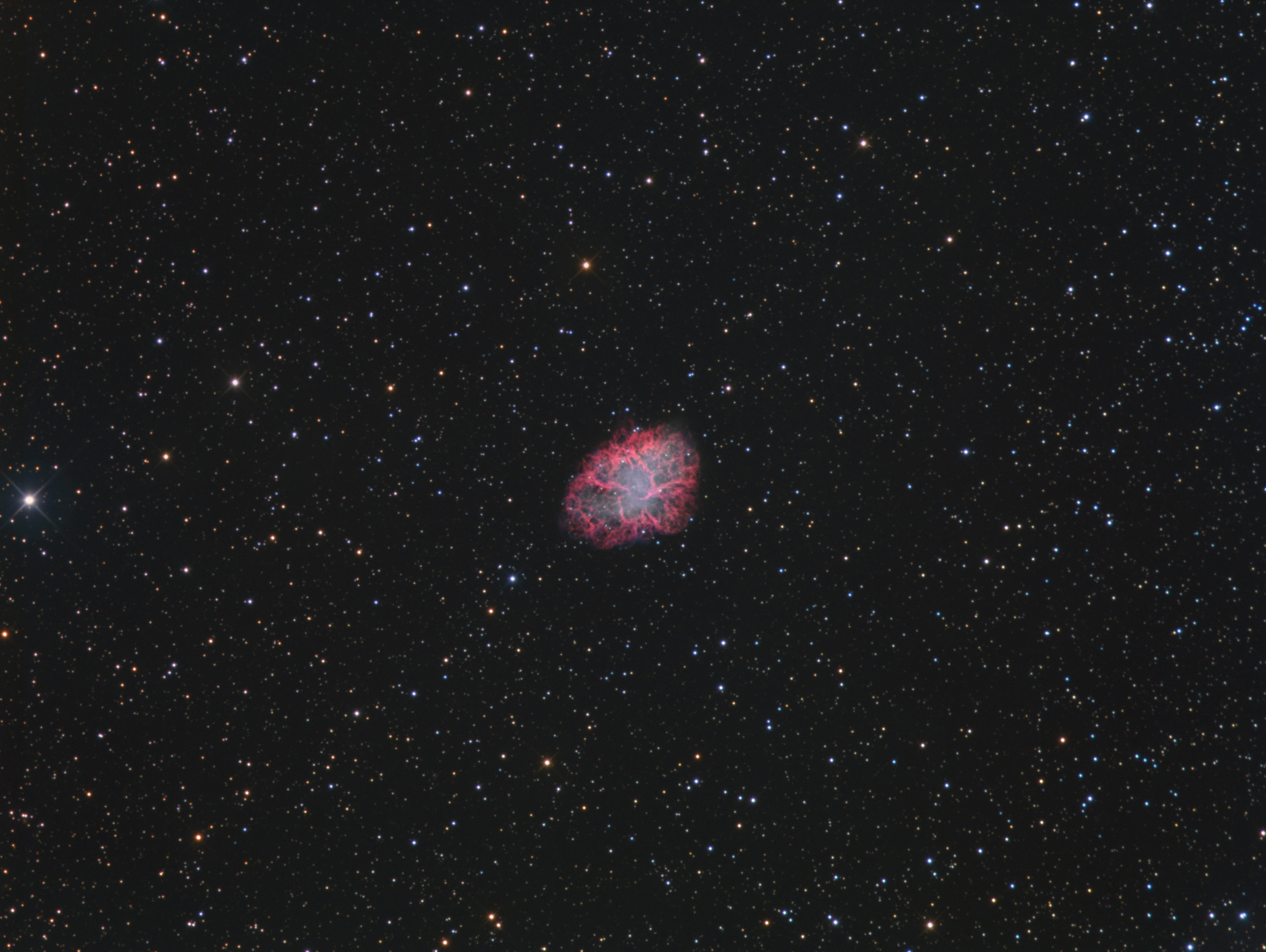 Der Krebsnebel in einem LRGB-Bild mit H-Alpha-Einbindung.