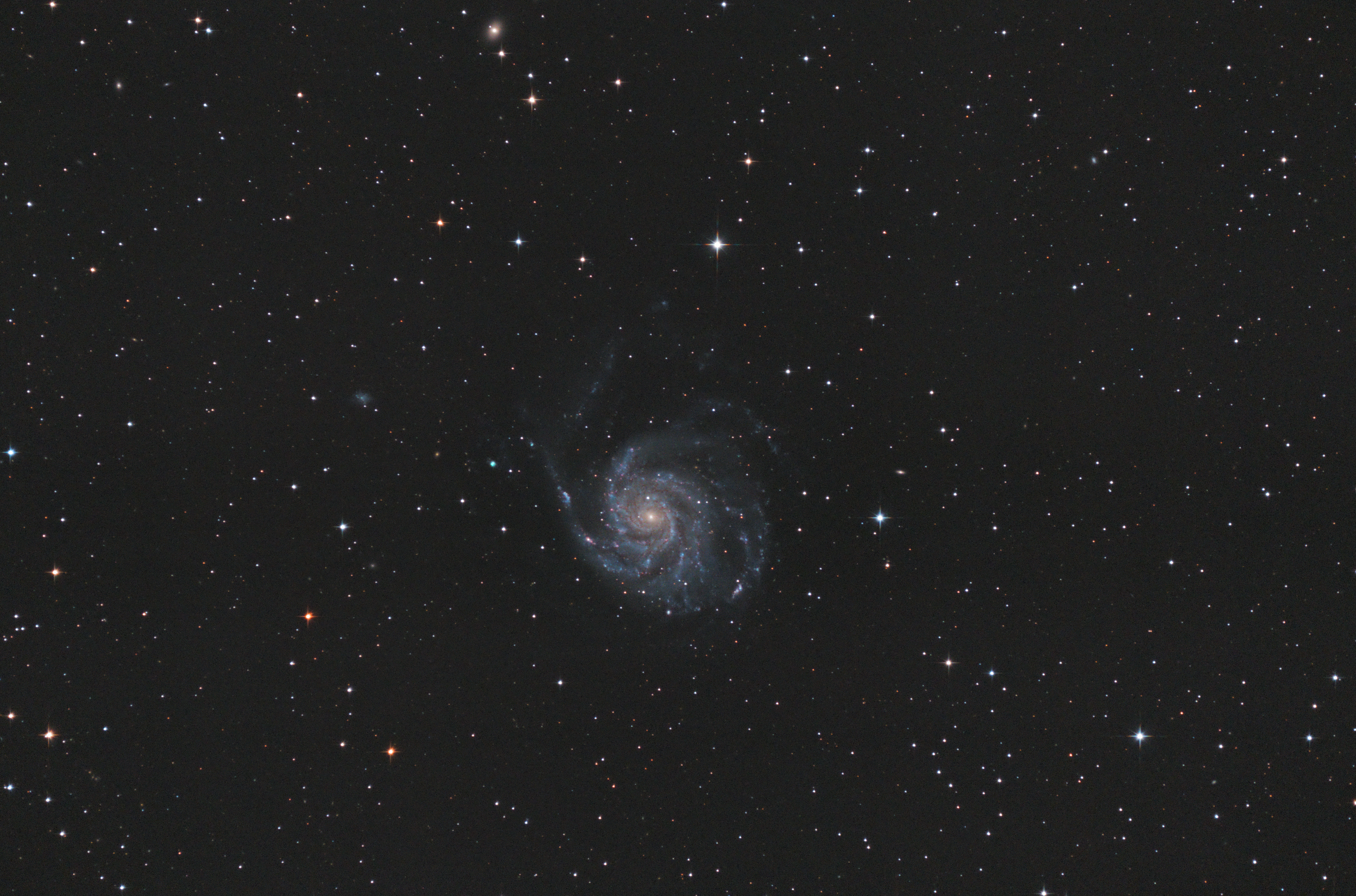 Messier 101 hat sehr charakteristische Spiralarme. Ihr Durchmesser beträgt 170000 Lichtjahre, also fast doppelt so groß wie die Milchstraße. Mit einer Entfernung von nur 16 Millionen Lichtjahren ist sie in direkter galaktischer Nachbarschaft!