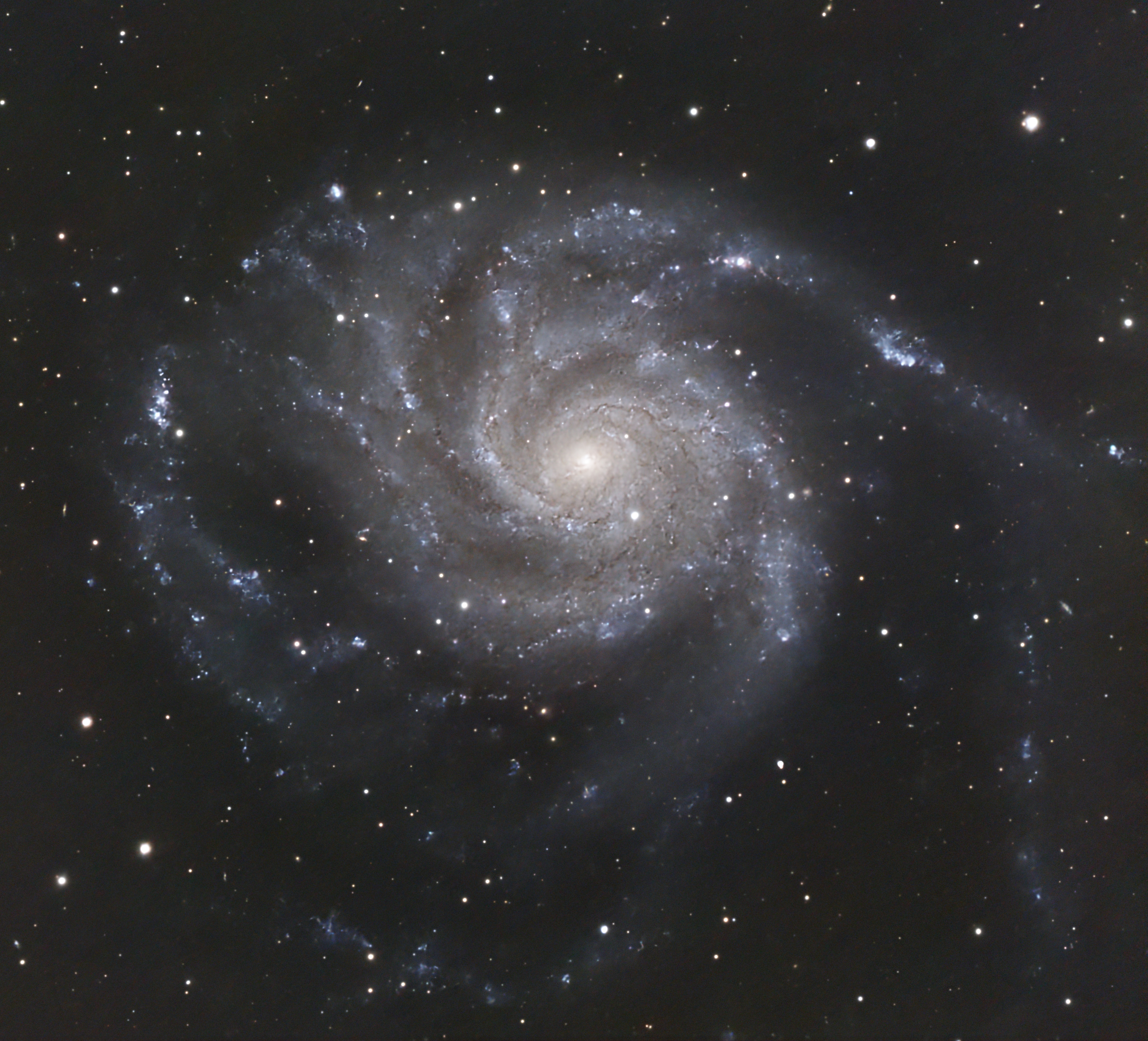 Da aufgrund ihrer scheinbaren Größe die Galaxie Messier 101 auch für kleinere Optiken attraktiv ist und im Frühjahr zur besten Zeit fast im Zenit steht, richtete ich in der Nacht zum 30. April 2025 meinen 6-Zoll f/10 Intes-Micro-Maksutov-Cassegrain auf diese Galaxie und belichtete insgesamt 2h 58m.