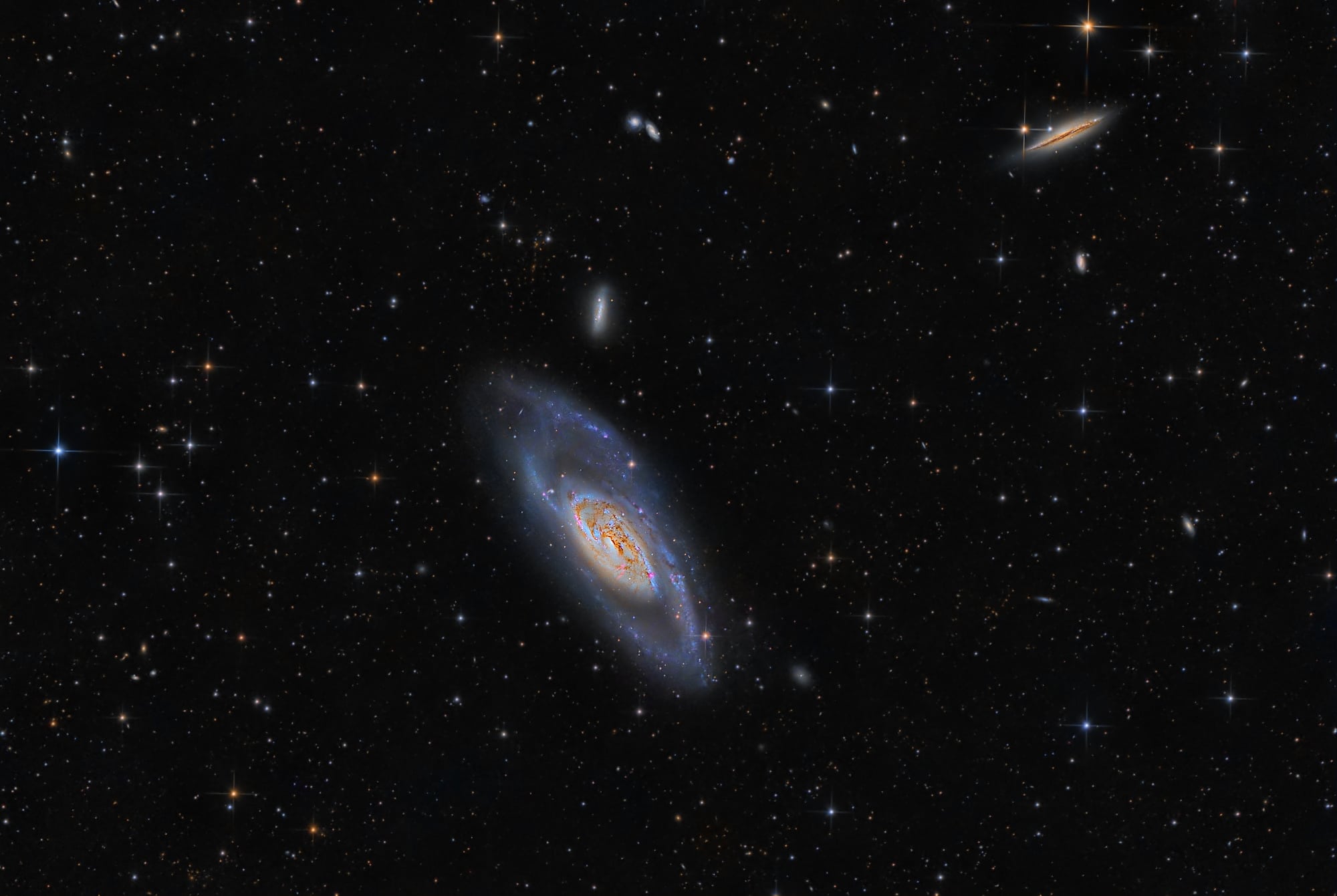 Messier 106 ist eine sehr auffällige Spiralgalaxie im Sternbild Jagdhunde. Zur Zeit der Fotografie im April hatte ich mit Sahara-Staub zu kämpfen. Über vier Nächte lang hatte ich 159 Einzelbilder mit je 5 Minuten gesammelt und konnte damit aus dem Staub die Galaxie "herauszaubern".