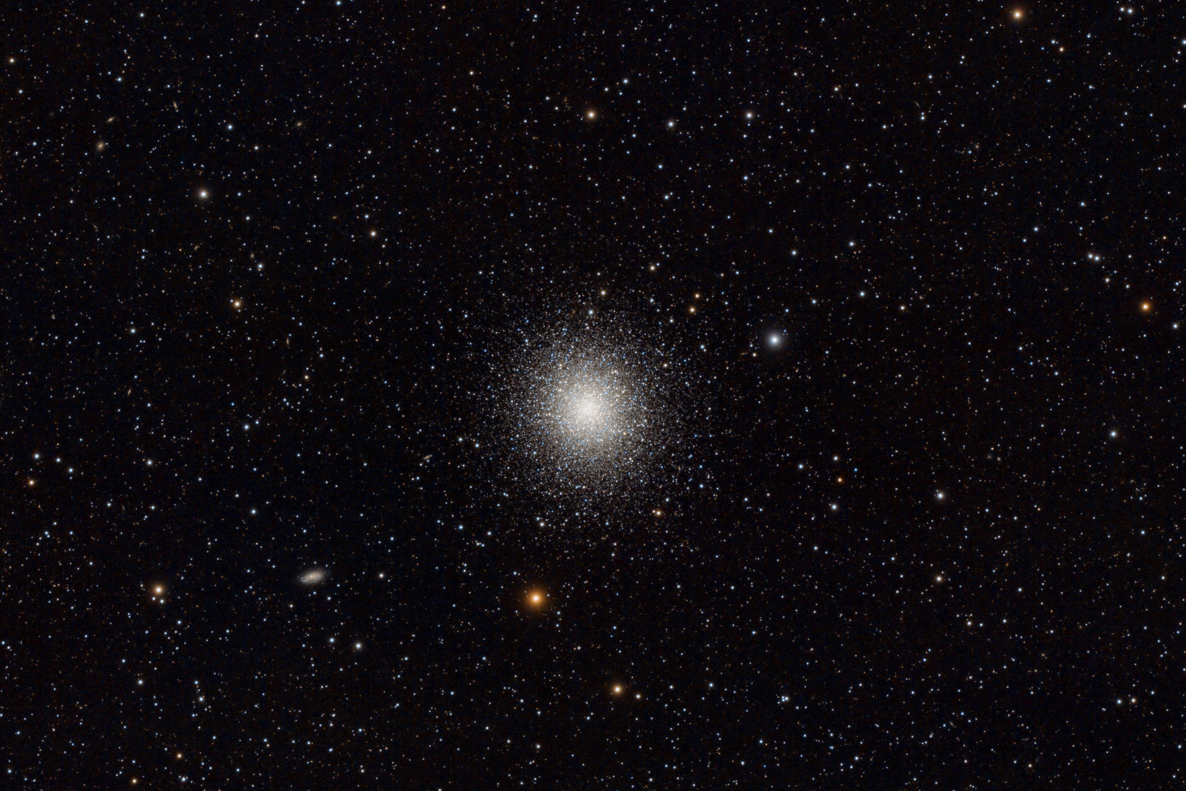 Messier 13 im Sternbild Herkules. Der Kugelsternhaufen wurde mit einer Canon EOS 6Da und einem TEC APO 140 f/7 Triplet Apochromat + Flattener aufgenommen. Die Belichtungszeit betrug 10 x 300 s bei ISO 800.