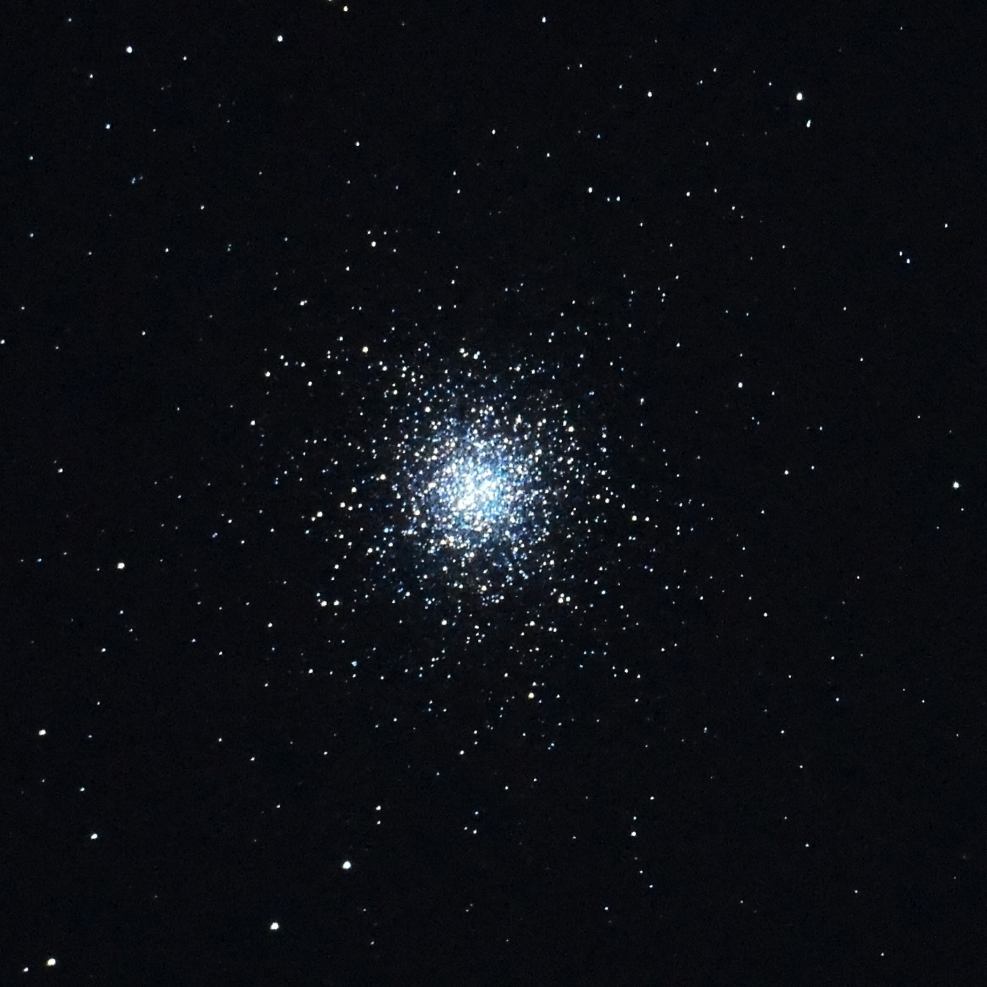 M13 - einer der größten Kugelsternhaufen. Mit der Kamera auch im nördlichen Ruhrgebiet ein eindrucksvolles Objekt. Belichtungsdaten: ISO 3200 / 30 sec.