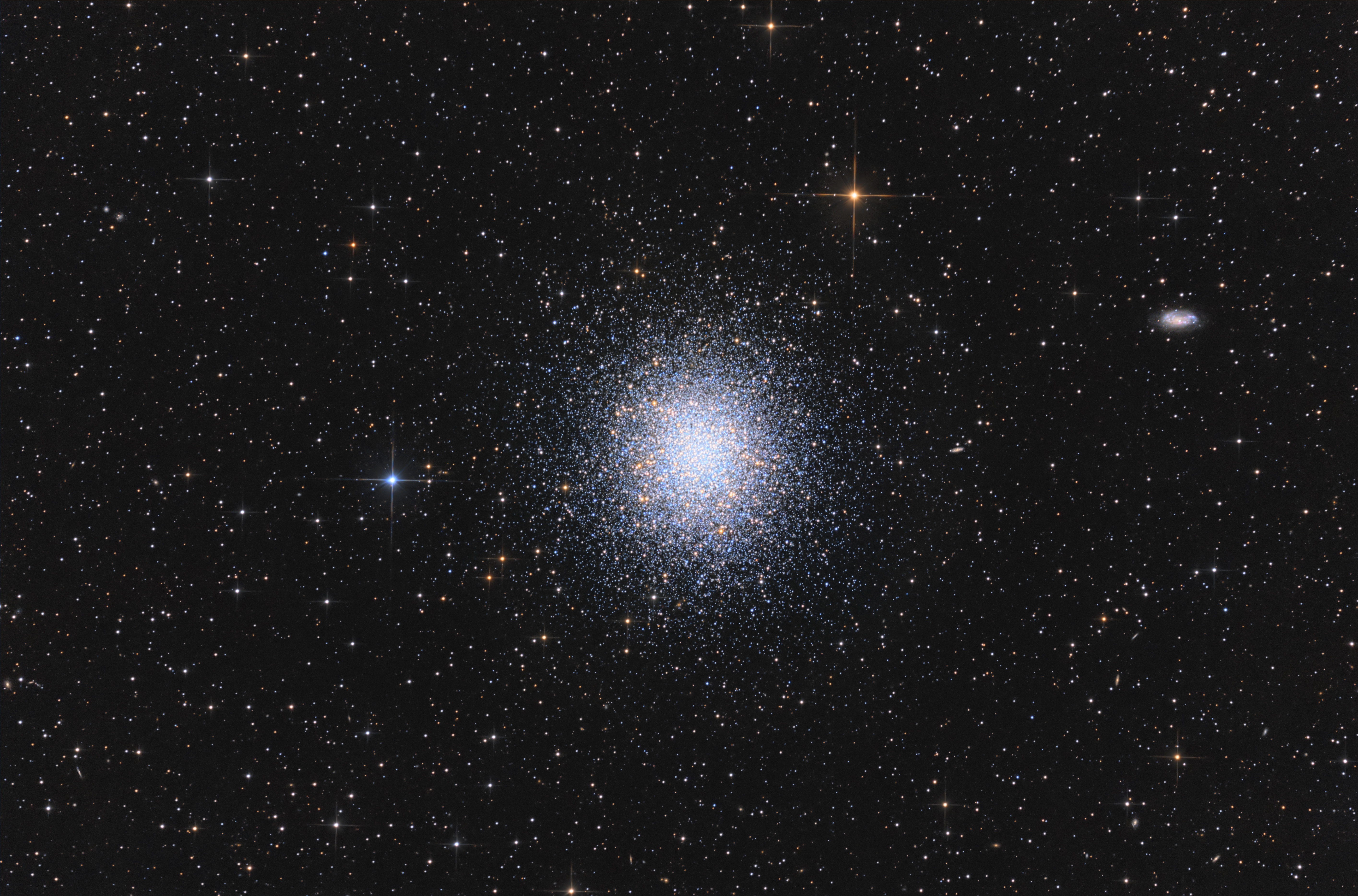 Messier 13 oder auch Herkuleshaufen genannt, ist das Paradeobjekt eines Kugelsternhaufens, zumindest wenn man von Mitteleuropa aus beobachtet. So habe ich mich schon öfters daran versucht, ihn möglichst optimal zu fotografieren. Mit Belichtungszeiten von fünf Minuten und weiteren mit zwei Minuten hoffe ich, die Lösung gefunden zu haben. Bei geeigneter Nutzung aller Einzelbilder sollten möglichst viele Sterne erreicht werden, ohne dass es zu irritierenden Überbelichtungen bei helleren Sternen kommt.