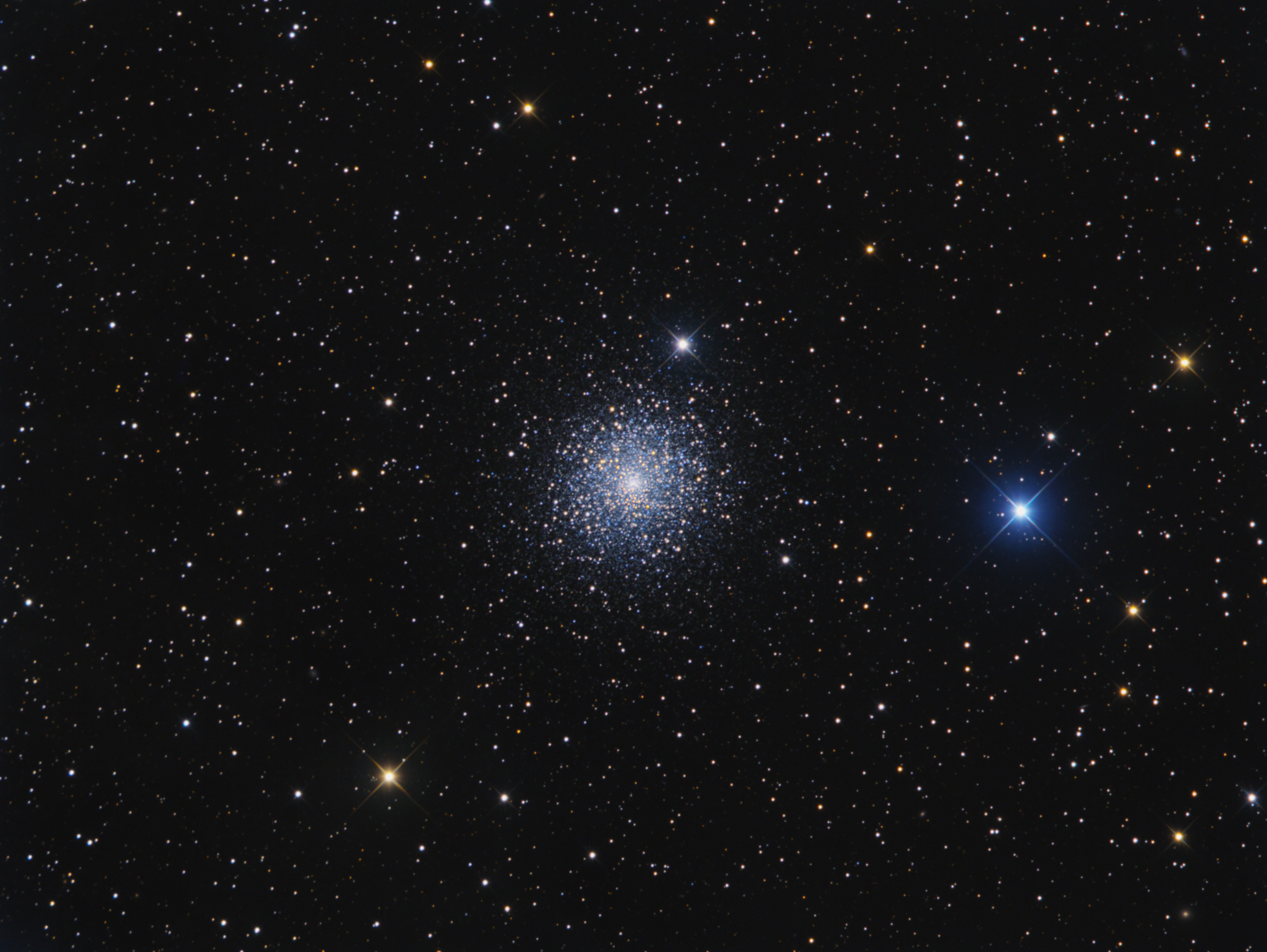 Messier 15 ist ein 6,2 mag heller Kugelsternhaufen im Sternbild Pegasus und ist rund 30000 Lichtjahre entfernt.