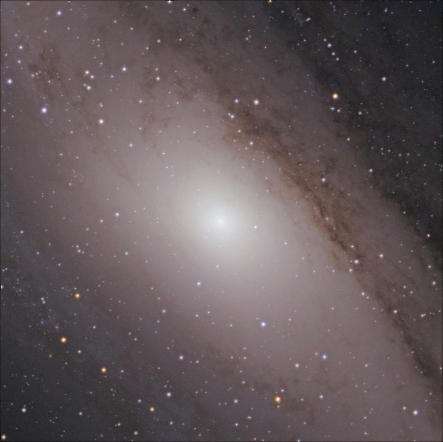M31 schiebt sich im Herbst immer über die Bäume des angrenzenden Waldes und irgendwie konnte ich es nicht lassen, da mal drauf zu halten. Nicht mit dem kleineren Gerät sonder mit ein wenig Brennweite. Kommt nicht so ästhetisch rüber wenn man nur die Kernregion drauf hat, war trotzdem spannenden in der Umsetzung mit dem hellen Zentrum.