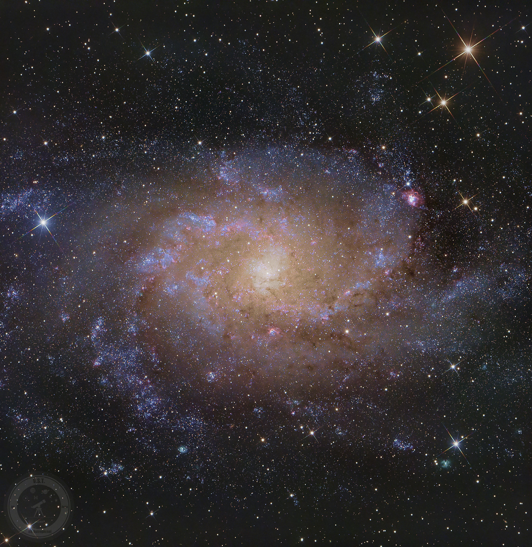 M 33 Dreieckgalaxie, aufgenommen am 17. September 2023 in meiner kleinen Gartensternwarte mit 8“-Newton und Zwo Asi 533 MCPro. 8h 32 min ohne Filter.