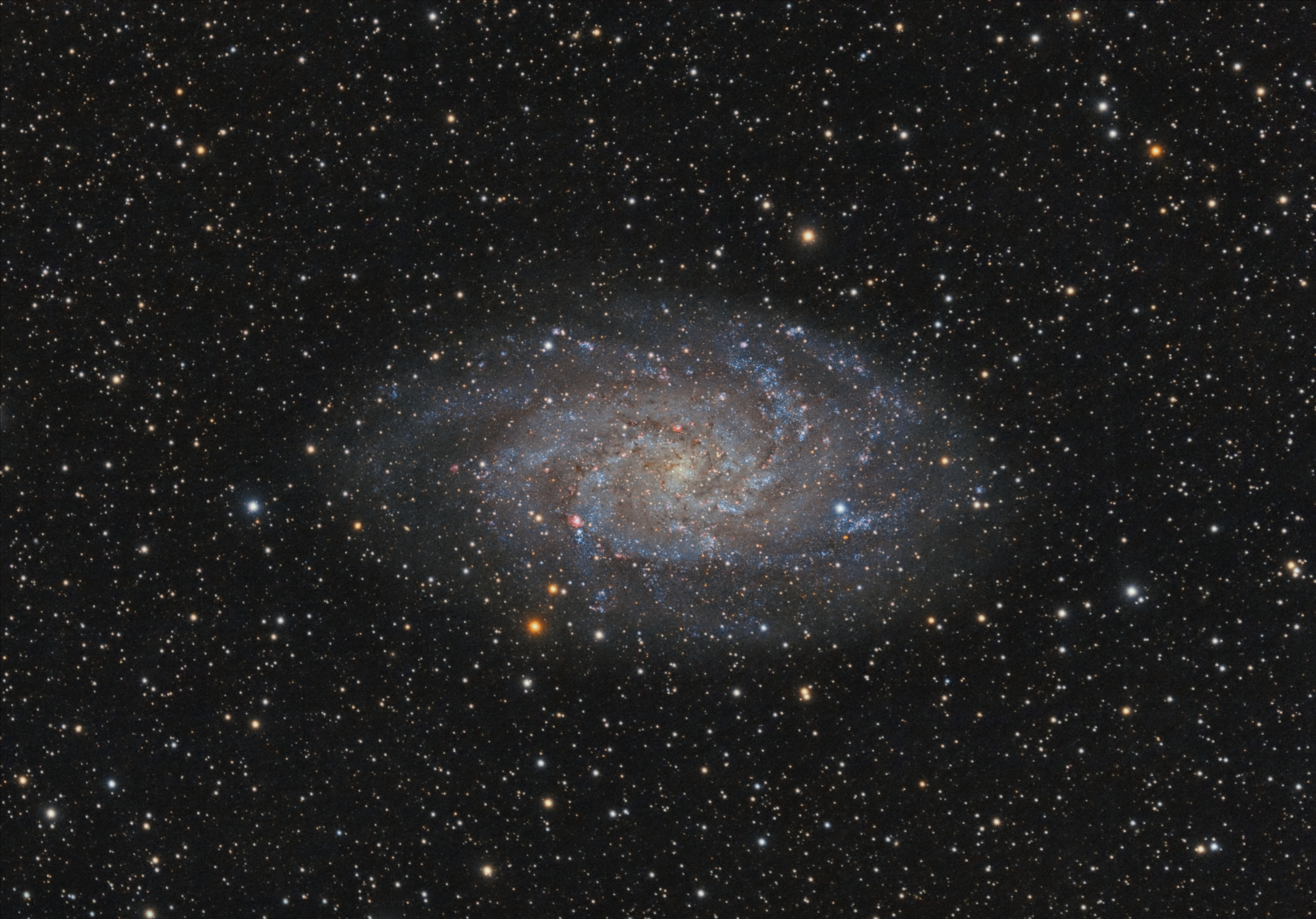 Hallo Freunde, zum Oktober-Neumond habe ich mir Messier 33 als fotografisches Ziel ausgesucht. Ich habe insgesamt drei Nächte belichtet und mit der EOS 400 Da 16 Stunden Photonen gesammelt. Zusammengekommen sind: