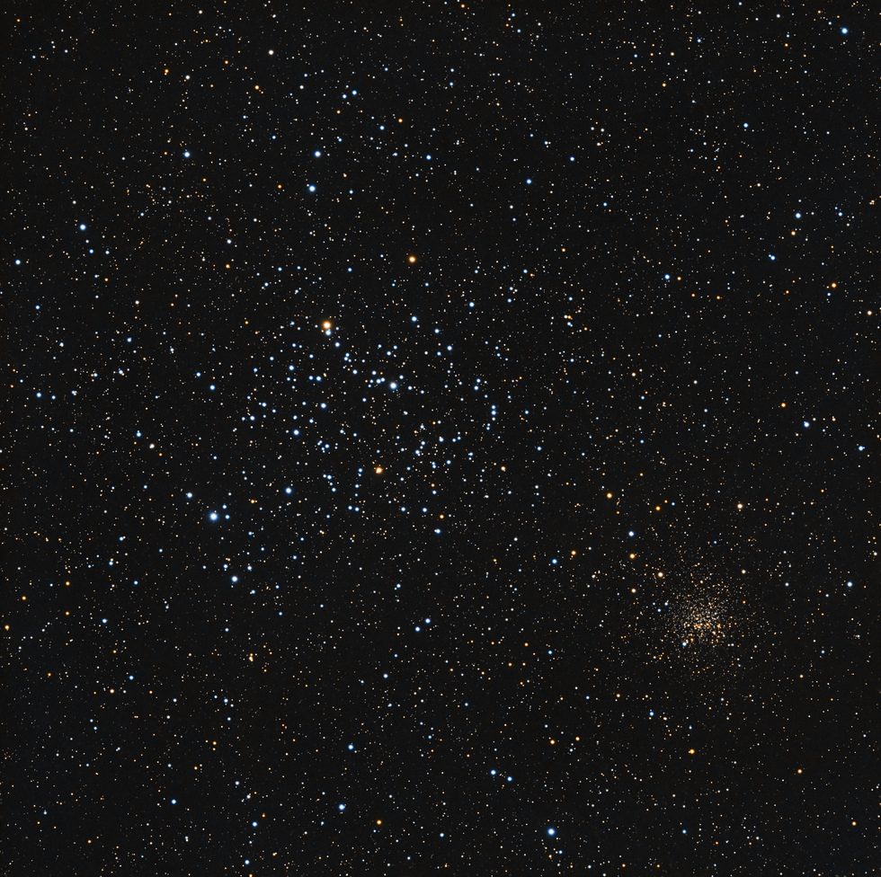 Mitte April nutzte ich ein paar klare Stunden, um noch mal am Winterhimmel Photonen zu sammeln. Die Zwillinge neigten sich schon Richtung Westen und ich suchte mir M35 mit NGC2158 als Aufnahmeobjekt aus, obwohl Vollmond herrschte. Dieses Paar von offenen Sternhaufen finde ich auch visuell immer herzeigbar bei öffentlichen Abenden auf der Astrostation Hochbärneck!