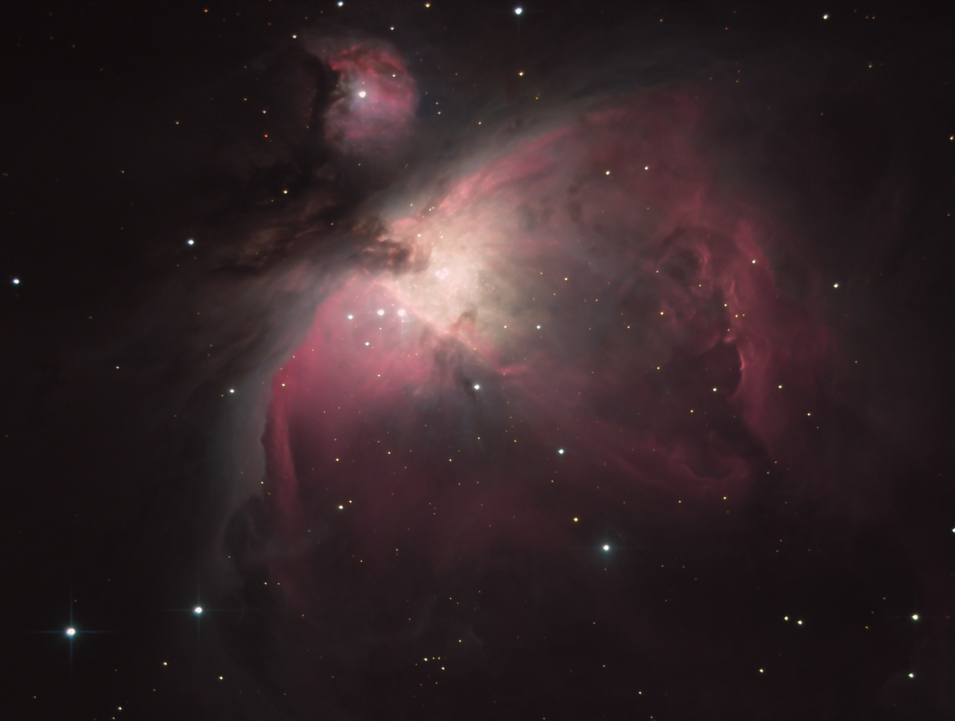 Messier 42: tausendmal schon publiziert! Aber dieses ist meine erste vollständige Aufnahme von Messier 42, nach 15 Jahren CCD-Astrofotografie. Zum Testen meines neuen MGEN-Autoguiders fiel mir kein anderes Objekt ein. Die Farben und Farbsättigung sind dezent gehalten, wie es eher in der Natur vorkommt. Und der kleine 6-Newton hat nach 70 Minuten seinen Himmel gefunden!