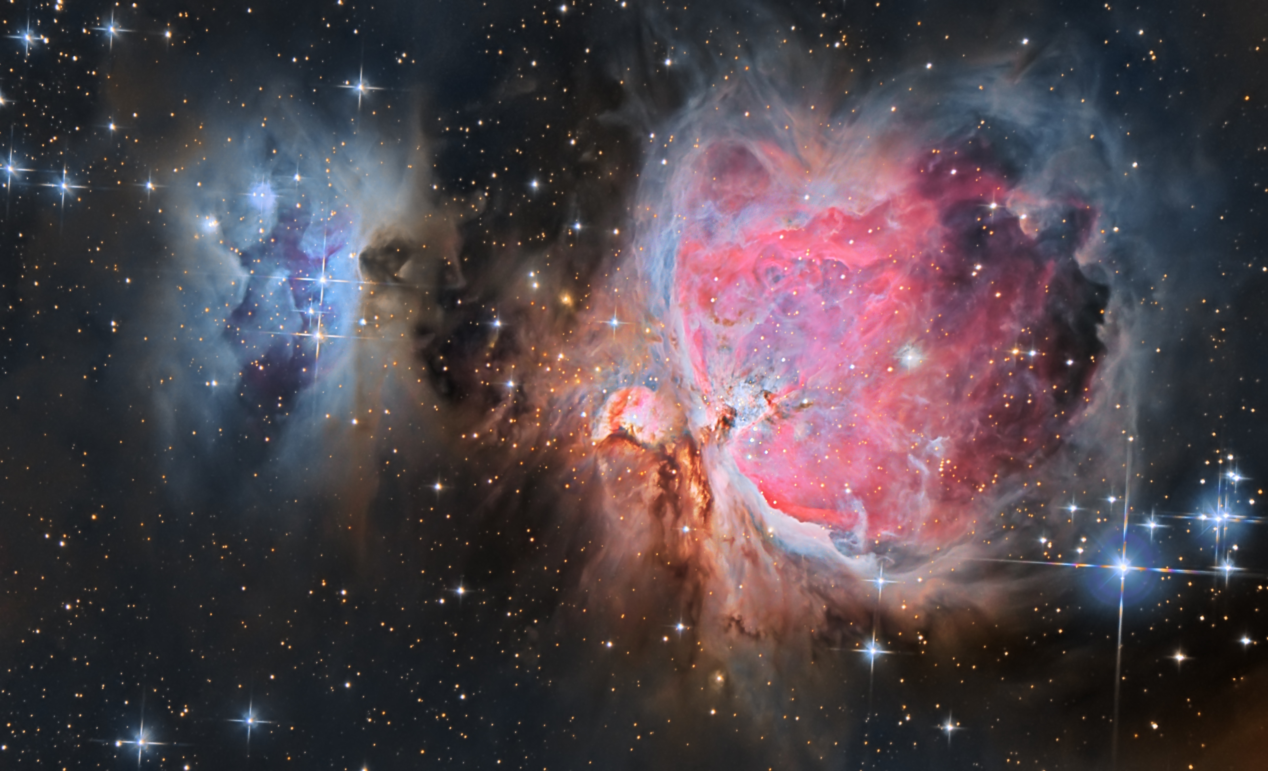 Durch den Zusammenschluss von Einzelbildern zweier Aufnahmenächte (30. Dezember 2016 und 16. März 2017) konnte ich den Orionnebel besser herausarbeiten und das Rauschen verringern.
