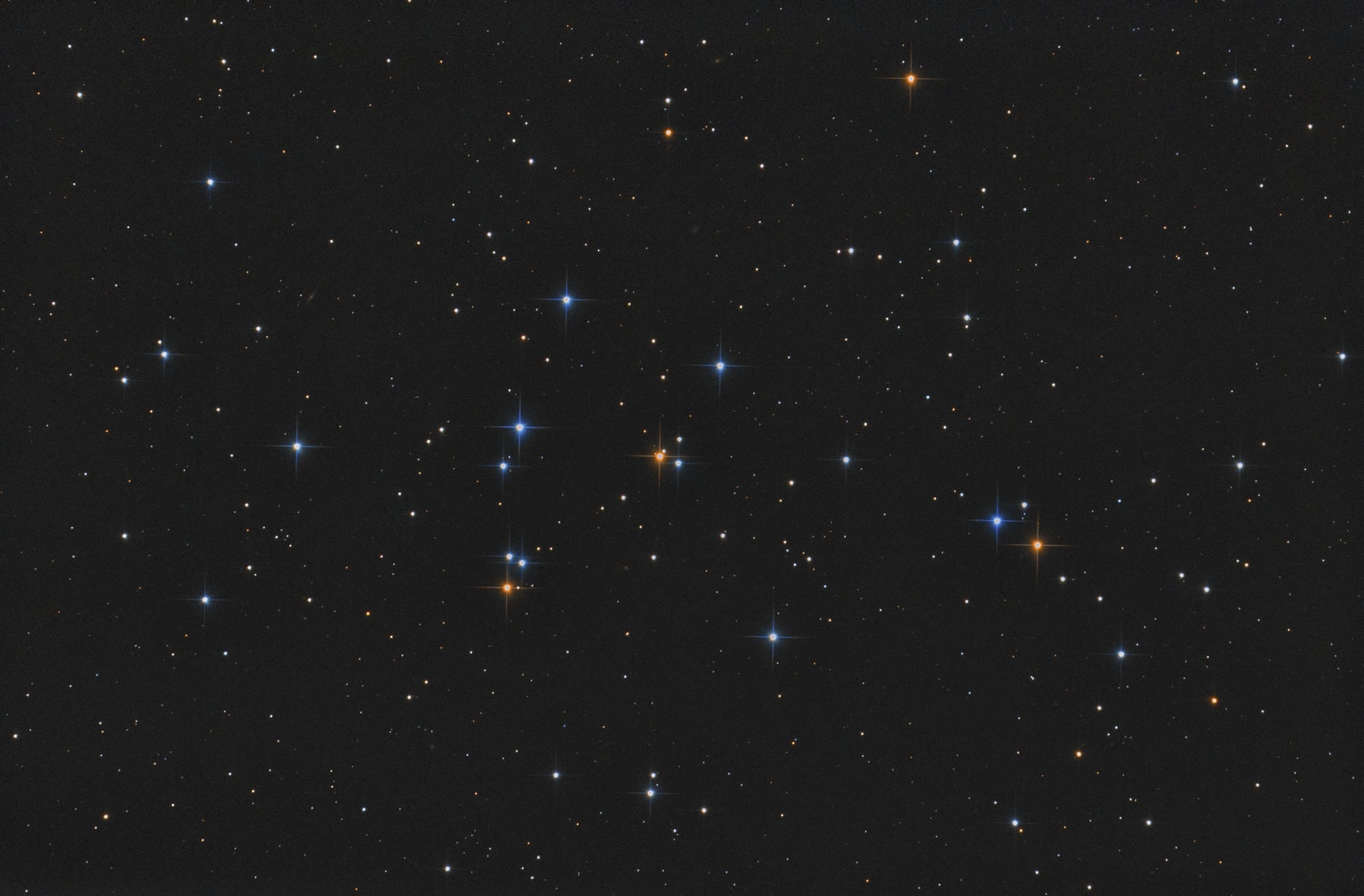 Dieses Objekt ist nicht sehr schwer zu fotografieren. Die Bedingungen dieser Nacht waren aber extrem. Direkt neben dem Sternhaufen war der 3/4 volle Mond, der die Einzelbelichtungen quasi ganz weiß machte. Ein Kunststück hat dabei Pixinsight vollbracht, wo ich das Mondlicht komplett herausfiltern konnte. Messier 44 ist vor allem visuell ein wunderschöner Sternhaufen, der derzeit im Sternbild Krebs hoch am Himmel zu sehen ist.
